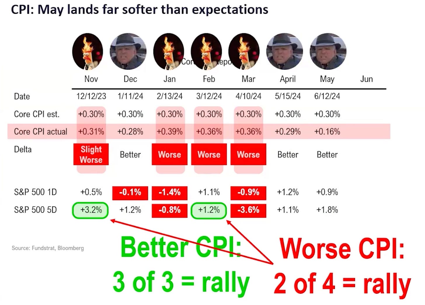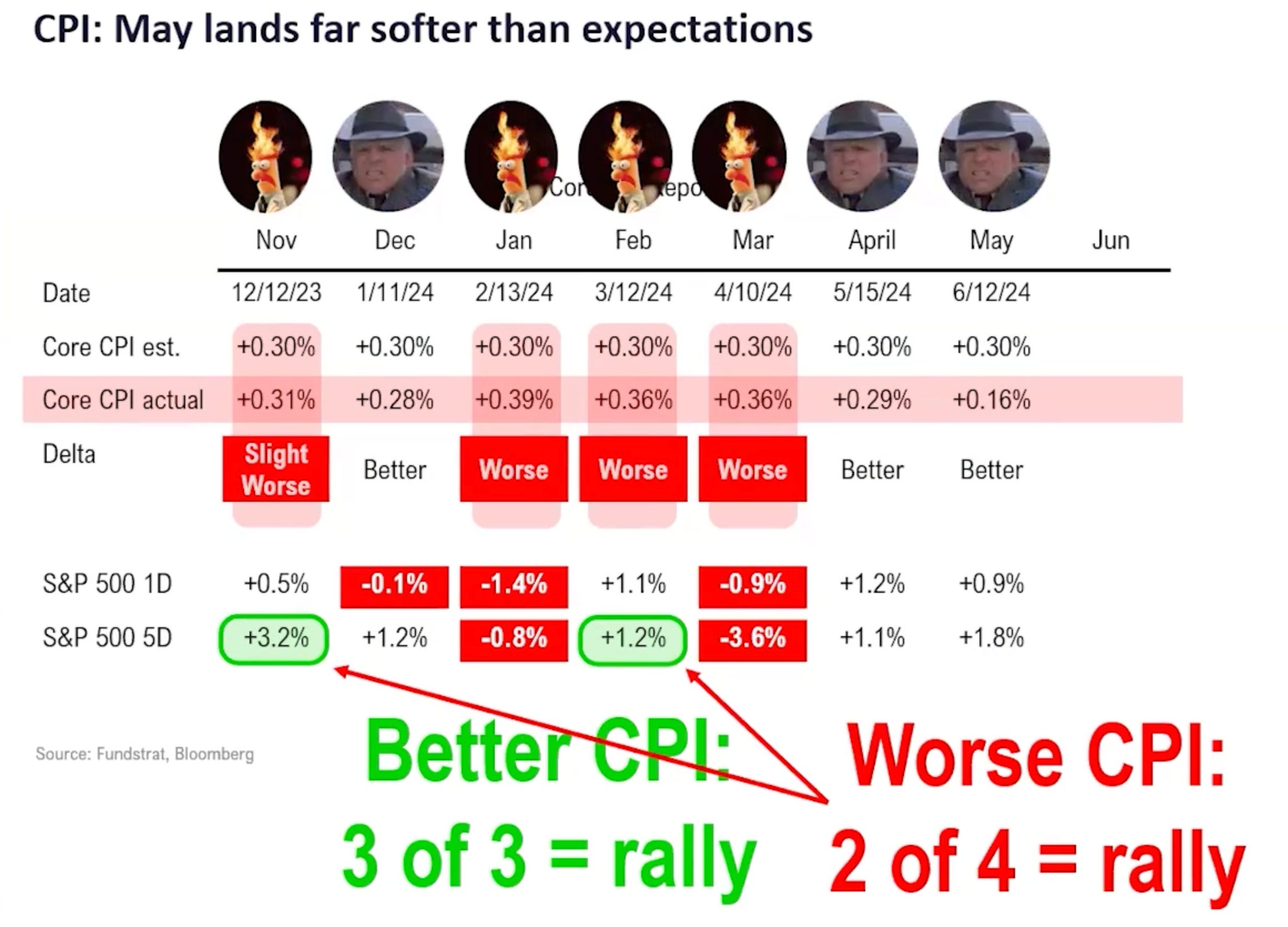 Удахгүй гарах инфляцийн дата сайн, муу үл гарснаас хамааран ихэнх тохиолдолд маркет өссөн болохыг дараах графикаас: