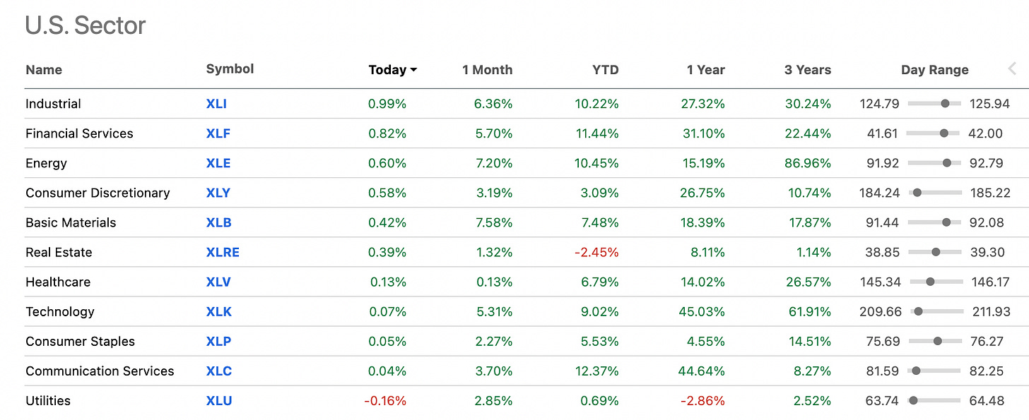 Industrial sector 0.99% usulttei, Utilities sector 0.16% unalt uzuulsen.