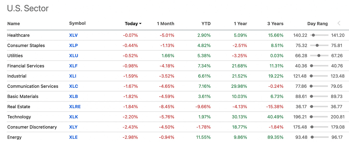 Healthcare sector 0.07% unalttai, Energy sector 2.98% unalttai.