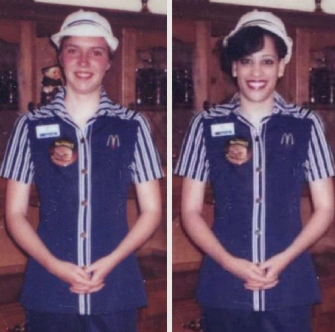 Камалаг ажиллаж байсан гэсэн баримт байхгүй байна гэж McDonalds-аас мэдэгдсэн бөгөөд Камала McDonalds-д ажилласан байсанаа батлахын тулд зураг гаргаж ирсэн нь хүртэл хуурамж photoshop болж таарав: