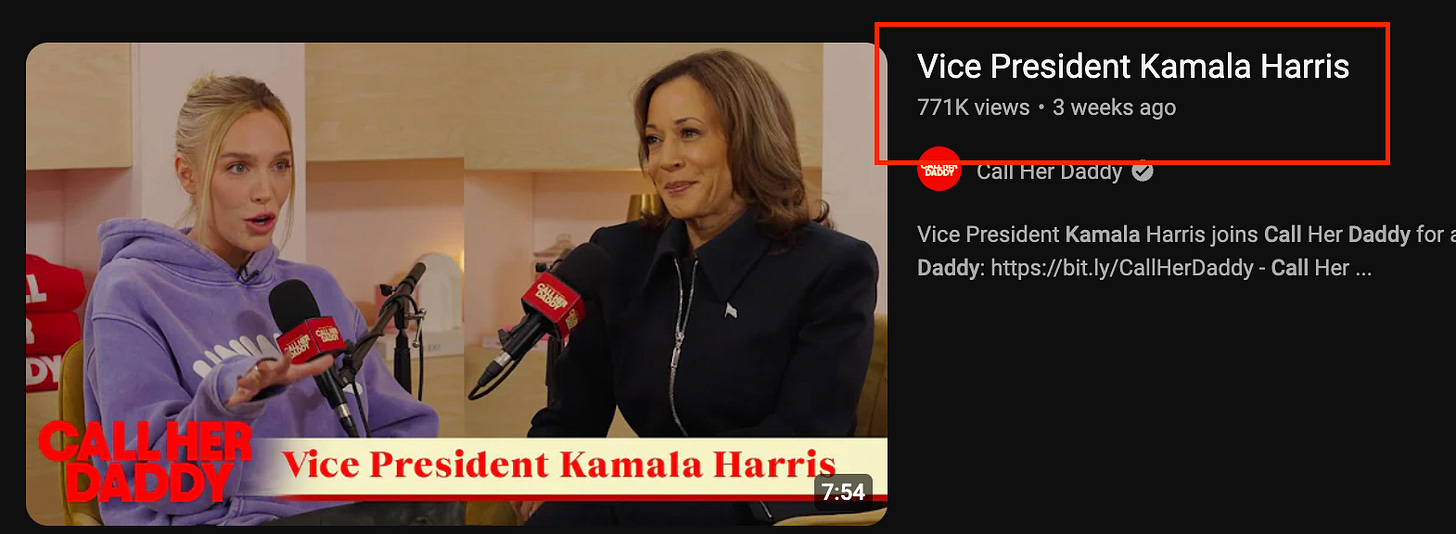 Трамп, Joe Rogan-ийн яриа youtube дээр л гэхэд 43 сая үзэлт, twitter, podcast, spotify-ийг оролцуулвал өлхөн 100 гаран сая хүн үзсэн үзүүлэлттэй байгаа бөгөөд Камалагийн орсон Call Her Daddy-ийн подкаст ердөө 771 мянган view-тэй байна.