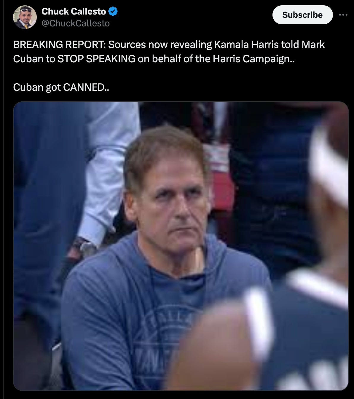 Камалагийн campaign-ээс Mark Cuban-ийг одоо дуугай бай гэж хэлсэн гэдэг мэдээлэл хүртэл гарав: