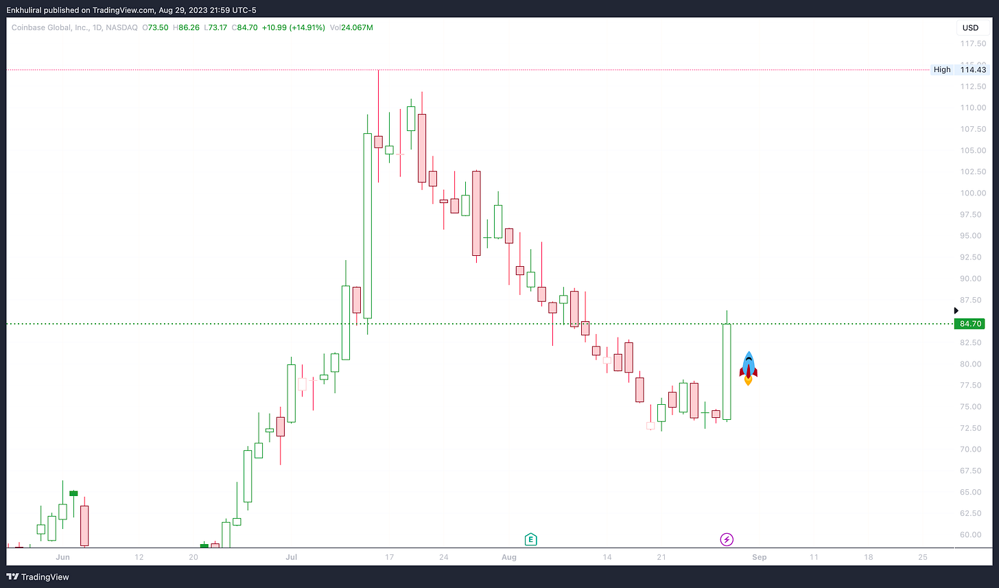 Өмнөх дугаараар 7 ассет санал төлбөртэй уншигчдаа санал болгосны нэг нь Coinbase байсан. Ямартай ч сайхан өсөлт байлаа.