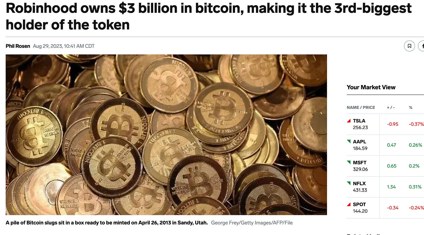 Robinhood 3 тэрбум долларын биткойнтой болж таарсан.