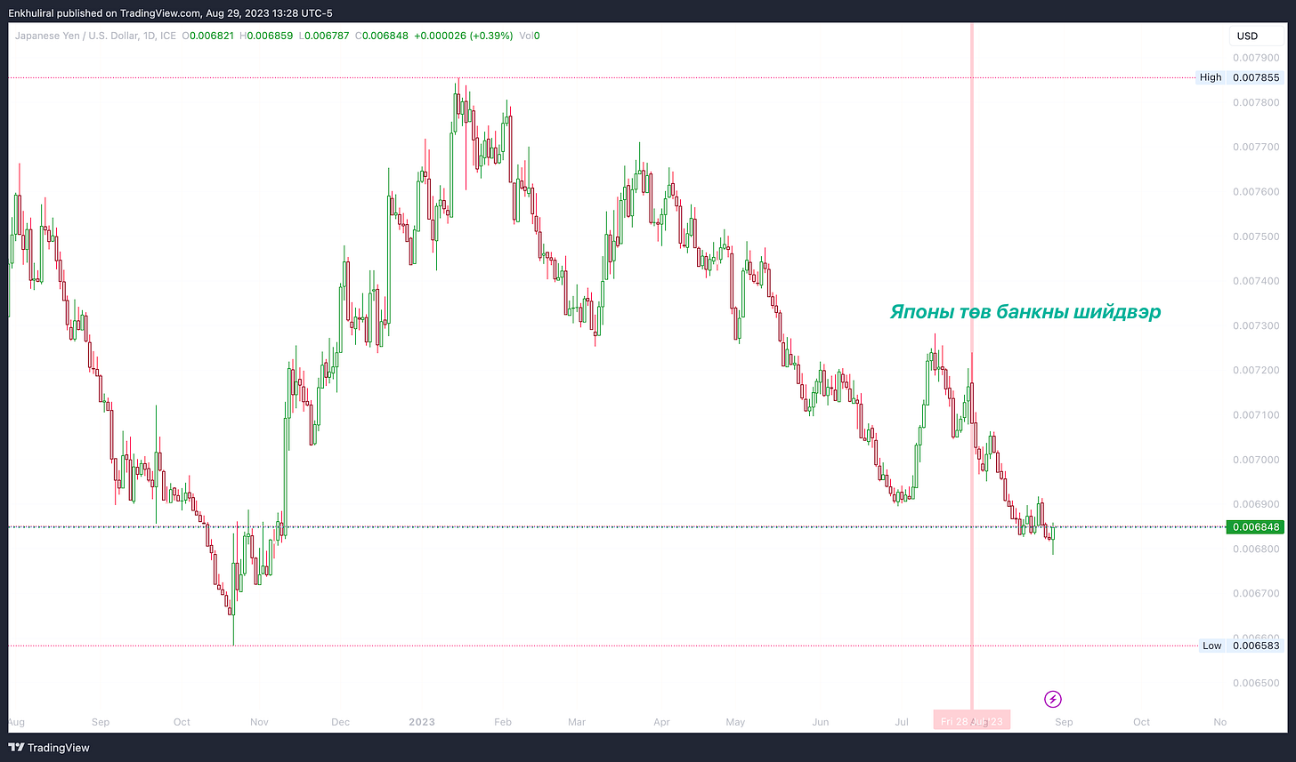 Дээрх ярианаас авах нэг гол юм нь carry trade буюу бага хүүтэй валютаар зээл аваад өндөр хүүтэй өөр валют авах арилжаанаас орж ирсэн ашгаар хувьцааны зах зээл рүү их хэмжээний мөнгө орж ирдэг. Японы төв банк бодлого дээрээ өөрчлөлт оруулаад Еэн чангарах юм бол дэлхийн хөрөнгийн зах зээлд том уналт орж ирэх магадлалтай гэж яриад байгаам л даа - их сонирхолтой яриа байсан.