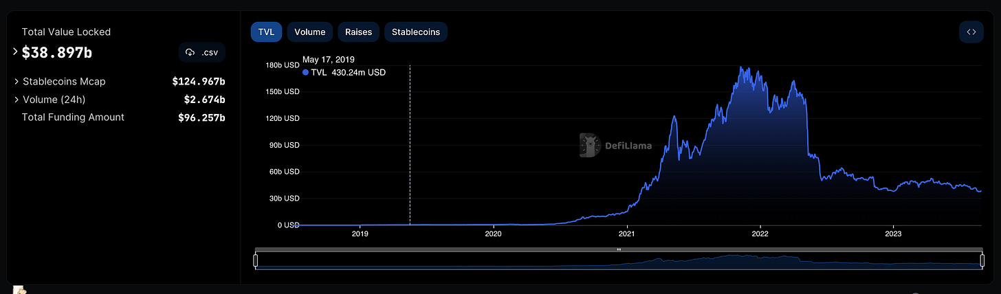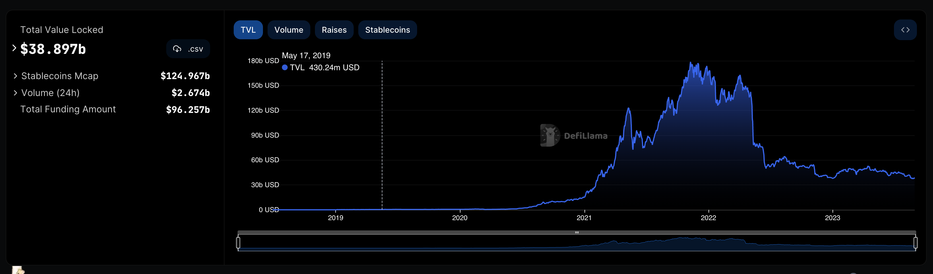 Доорх графикаас харвал 2022 оны 3 сараас хойш TVL өссөнгүй.