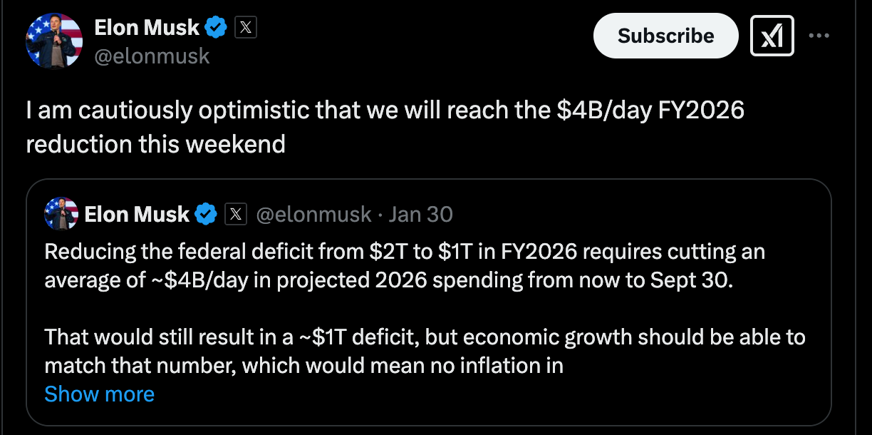 Элон энэхүү шинэ засгийн газарт өөрийн хувь нэмрээ оруулахыг амалсан бөгөөд энэ нь төсвийн алдагдлыг 50% бууруулах, үргүй зардлыг үгүй хийх бөгөөд энэ ажлыг манлайлан ажиллах шинэ байгууллагыг DOGE буюу “Department of Government Efficiency” гээд байгаа юм.
