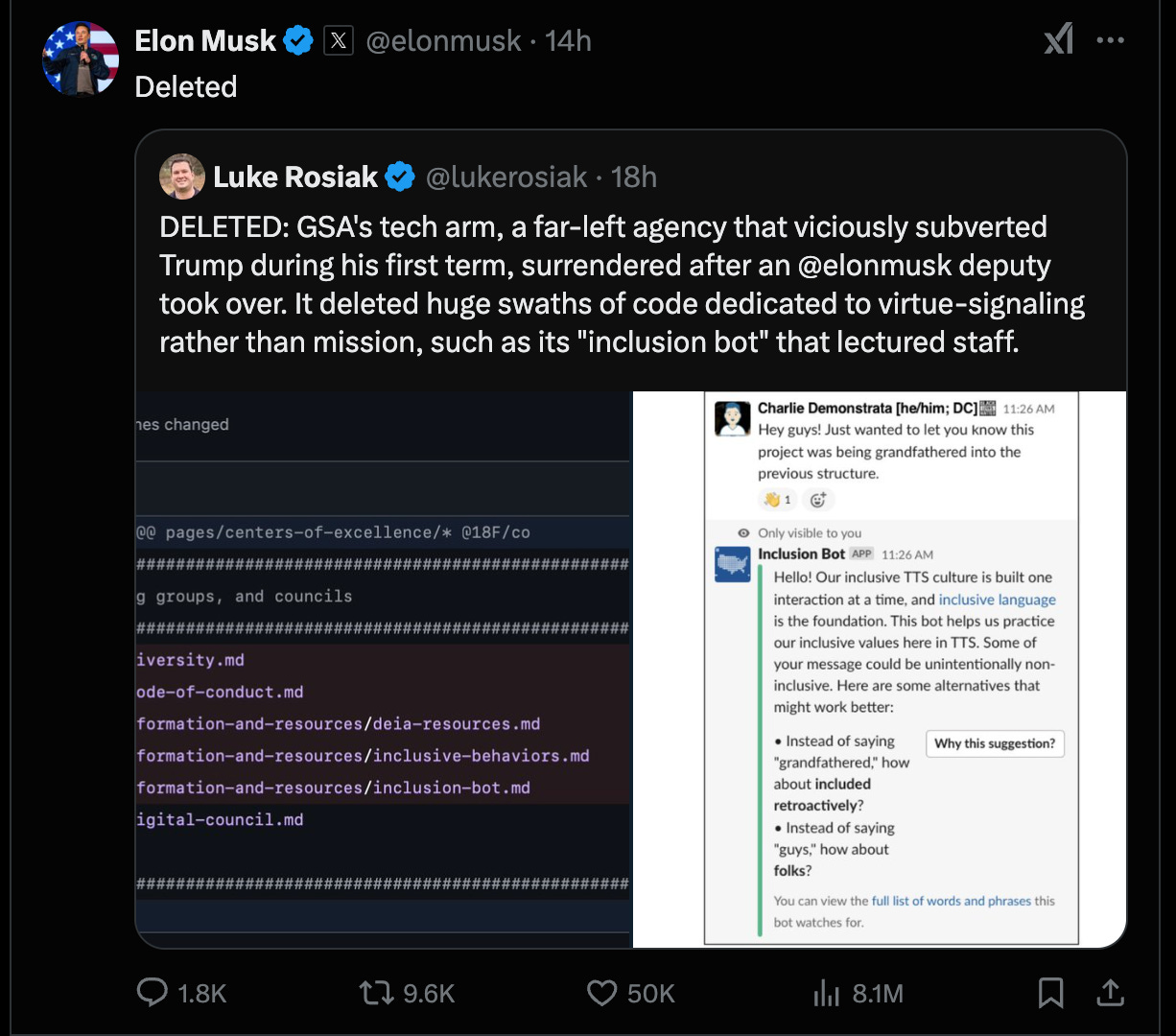 DEI bot хүртэл байсныг байхгүй болгосон байна.