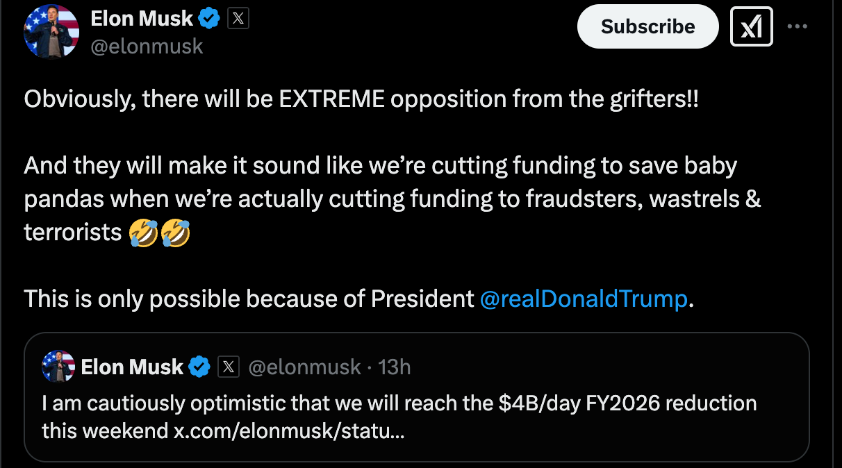Doge аль хэдийн галзуу үр ашиггүй зардлуудыг илрүүлээд эхэлсэн бөгөөд энэ дунд Gaza руу Террористуудад 50 сая долларын КОНДОМ илгээх гэж байсныг зогсоосон байна.