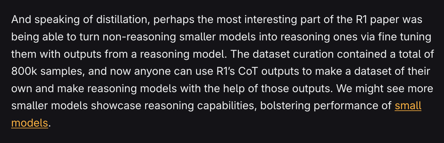 Deepseek-ээс гарсан сонирхолтой инноваци нь жижиг моделуудыг, том модел ашиглан сайжруулсан явдал юм.