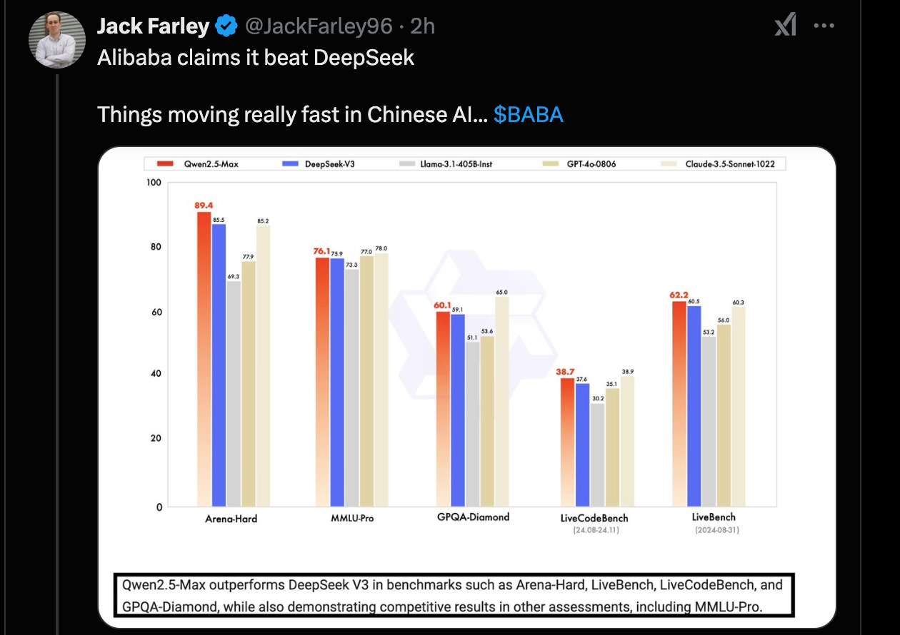 Хятадын 200 ажилтантай startup Америкын Триллионоор үнэлэгддэг компаниудтай өрсөлдөж чадаж байгаа нь Alibaba-руу маркетыг анхаарлаа хандуулахад хүргэсэн юм. Deepseek өөрсдийн дата центрээс гадна Alibaba cloud хэрэглэдэг ба Alibaba бас өөрсдийн Qwen моделыг танилцуулсан билээ.