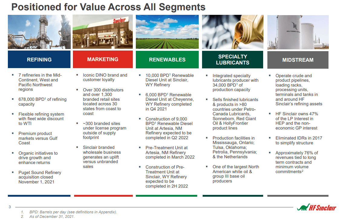 DINO нь Техас мужийн Даллас хотод байрладаг эрчим хүчний компани бөгөөд Бензин, дизель түлш, онгоцны түлш, сэргээгдэх дизель түлш (renewable diesel) болон бусад бүтээгдэхүүнүүдийг үйлдвэрлэж зах зээлд нийлүүлдэг. Тэд АНУ, Канад, Нидерландад бүтэгдэхүүнээ үйлдвэрлэн дэлхийн 80 гаруй оронд экспортлож байна.