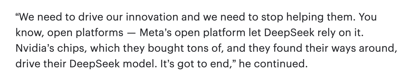 Хятадад бид нар туслахаа болих хэрэгтэй гэсэн бөгөөд сүүлд гарсан Deepseek Америк технологи дээр суурилсан болохыг онцолсон байна.