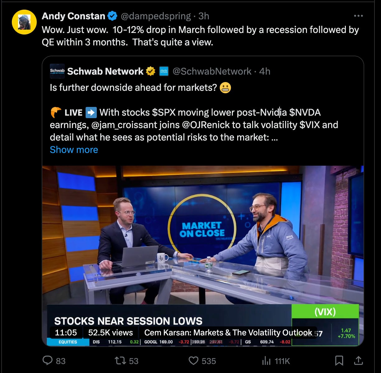 Эдийн засгийн өсөлтийн хүлээлт өндөр байгаа нь өсөлт маркетын хүлээлтэд хүрэхгүй байх магадлал буюу downside surprise-ийг их болгож байна. Энэ сэдвээр Bob Elliot энд ярьсан байна.