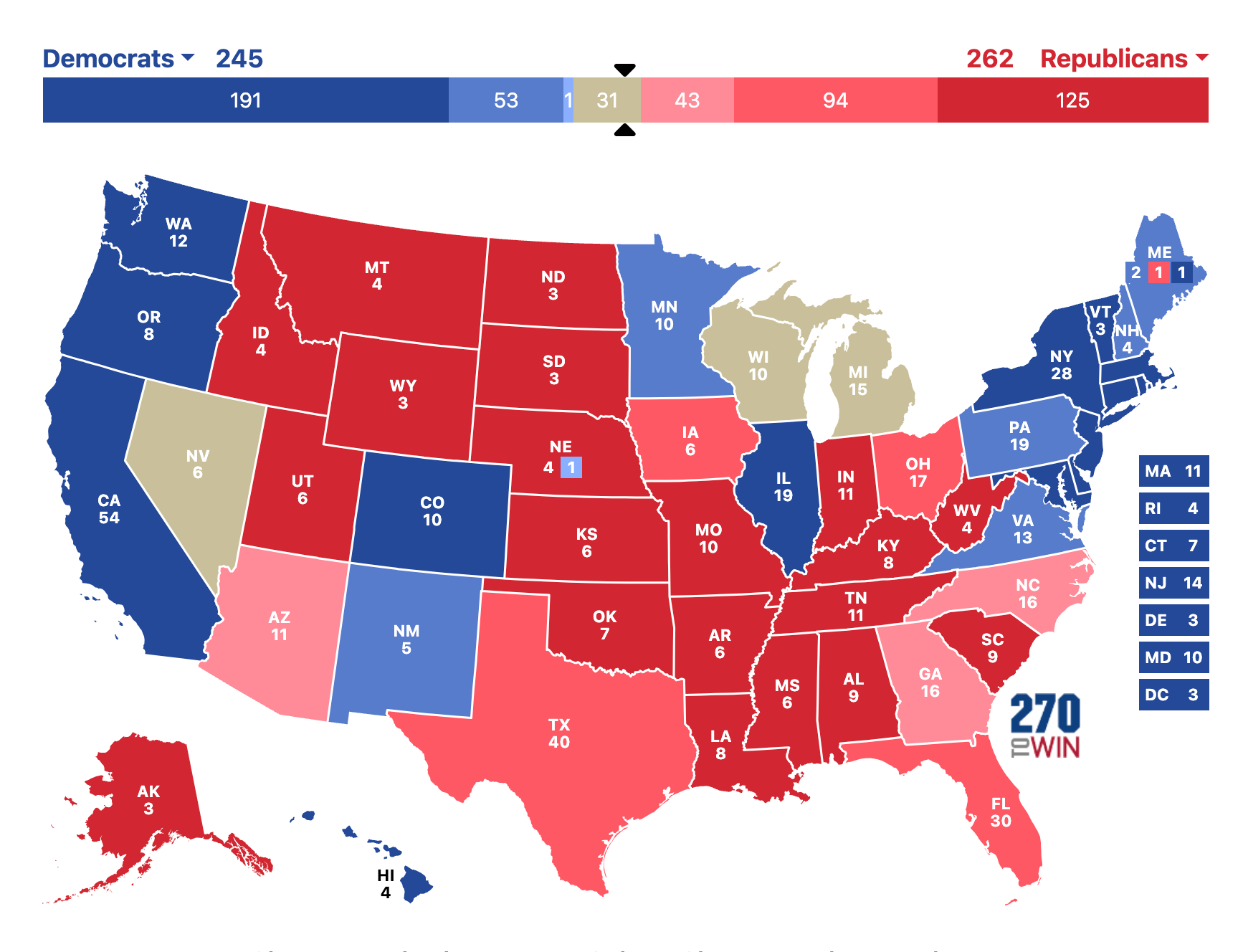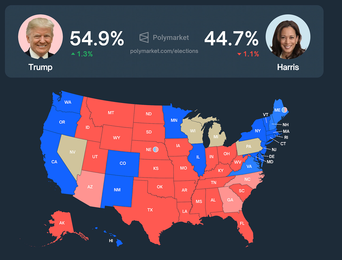 Arizona, North Carolina, Georgia 3-т Trump ялах магадлал өндөр гэж prediction market үзэж байна. Үүн дээр нэмээд Pennsylvania-г ялахад л сонгуульд Trump ялах юм.
