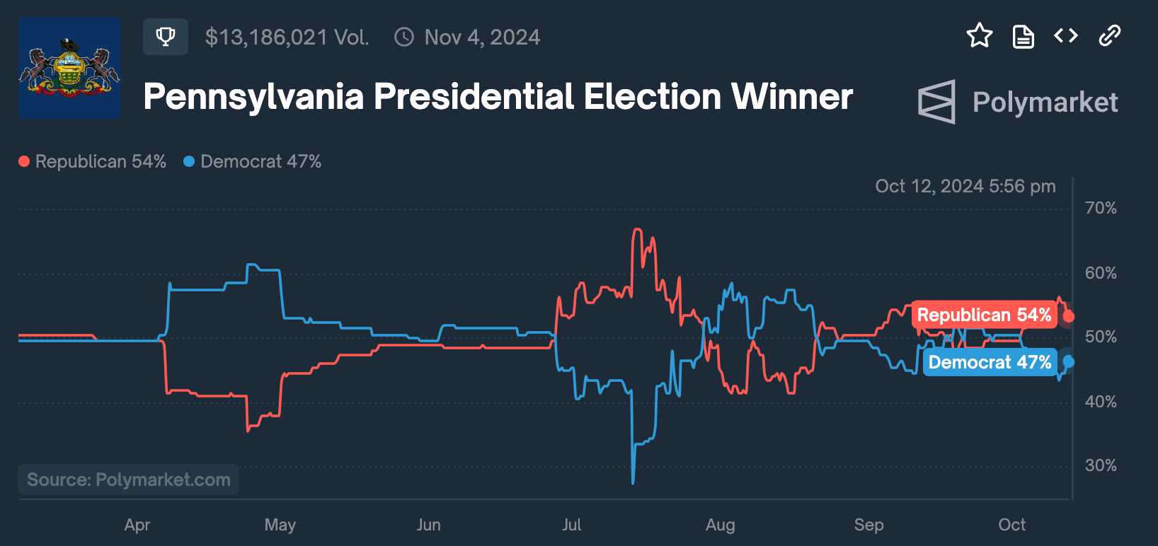 Трампыг Pennsylvania-д алах гэж оролдсон дээрээс нь сүүлд Rally хийхэд Elon хамт байсан. Камала өмнө fracking-ийг хорино гэж амлаж байсан зэргийг бодолцоод би Pennsylvania-д Трампыг ялна гэдэгт илүү итгэлтэй байгаа байна. Тиймээс ийм бооцооны жишиг хувилбар байж болно.