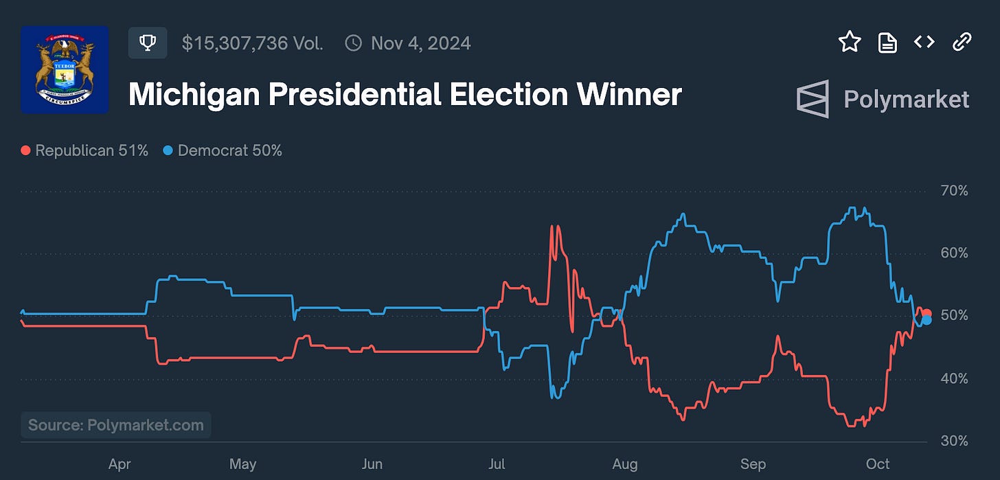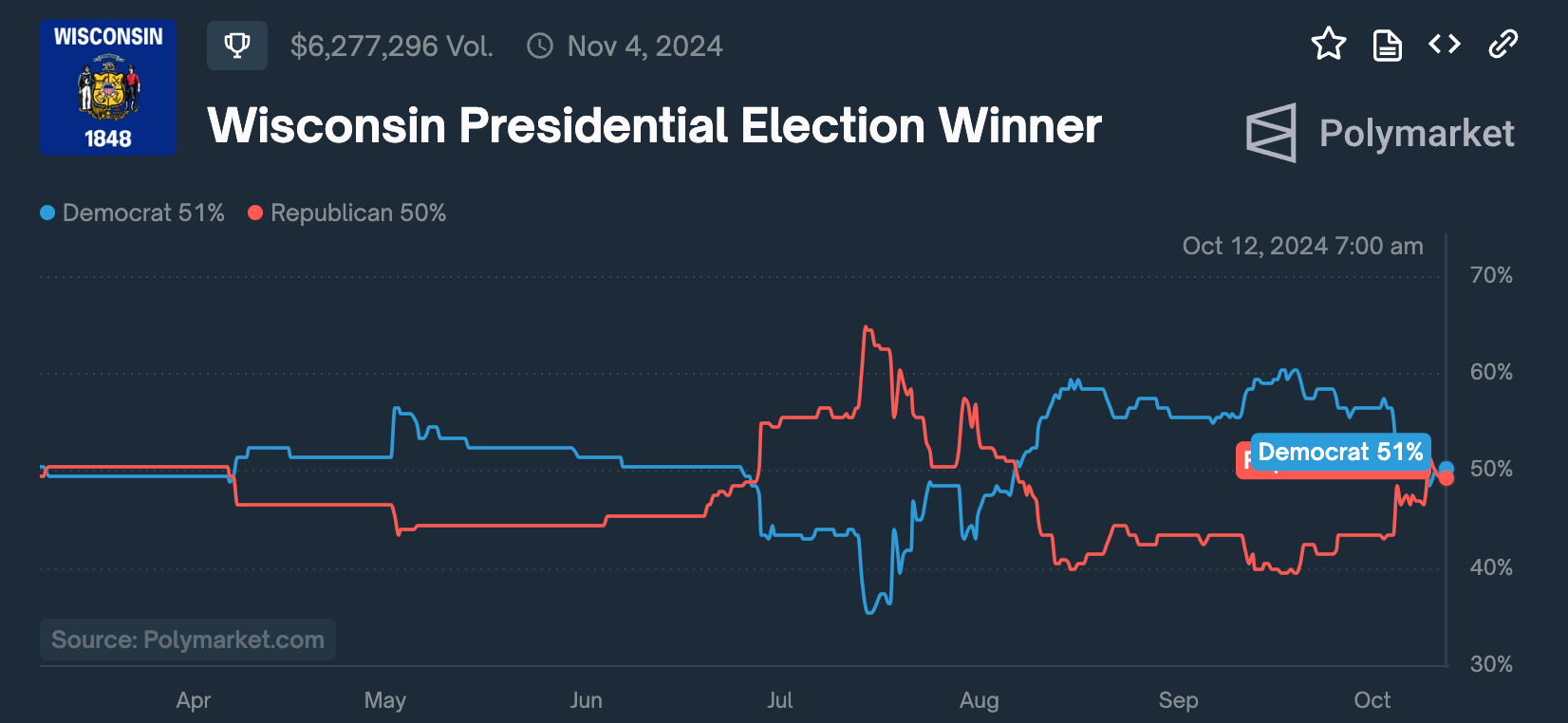 Камала ялахын тулд Wisconsin, Michigan, Pennsylvania 3-ыг ялах шаардлагатай учраас Трамп дээр тавьсан бооцоогоо эдгээр 3 муж дээр Камала ялна гэсэн бооцоо тавьснаар хэдж хийх боломжтой юм.