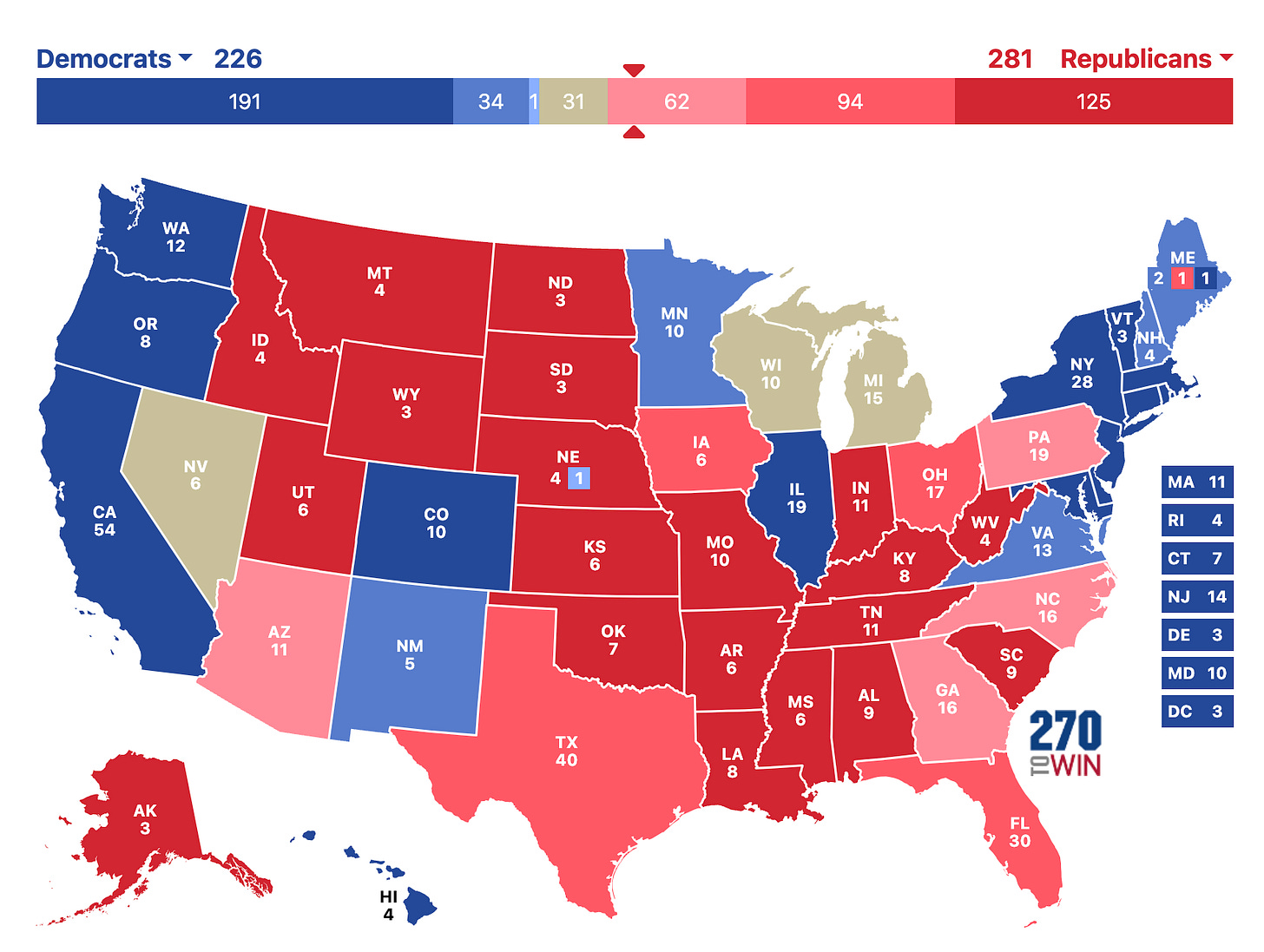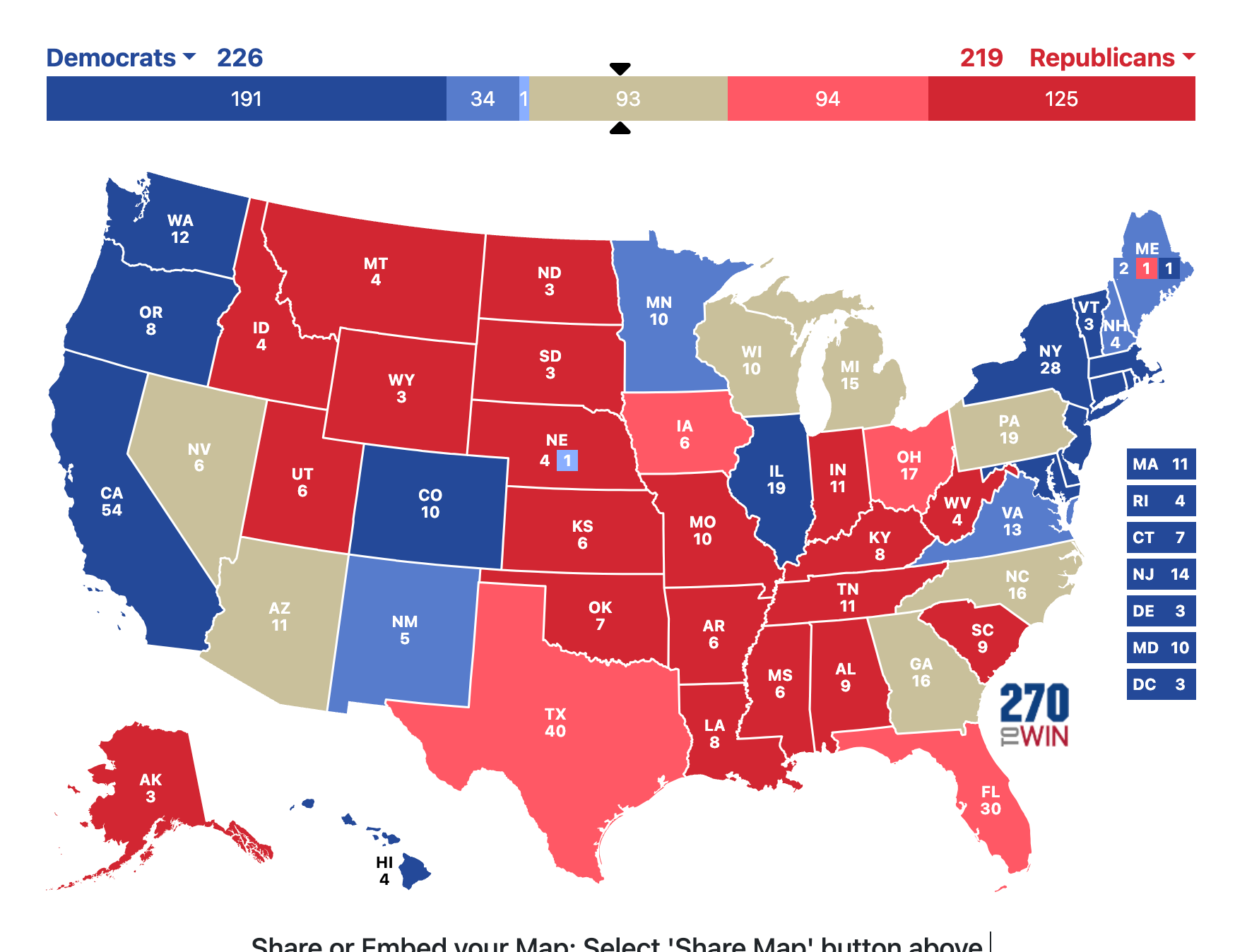Swing state-үүдийг оруулахгүй electoral map ийм байна:
