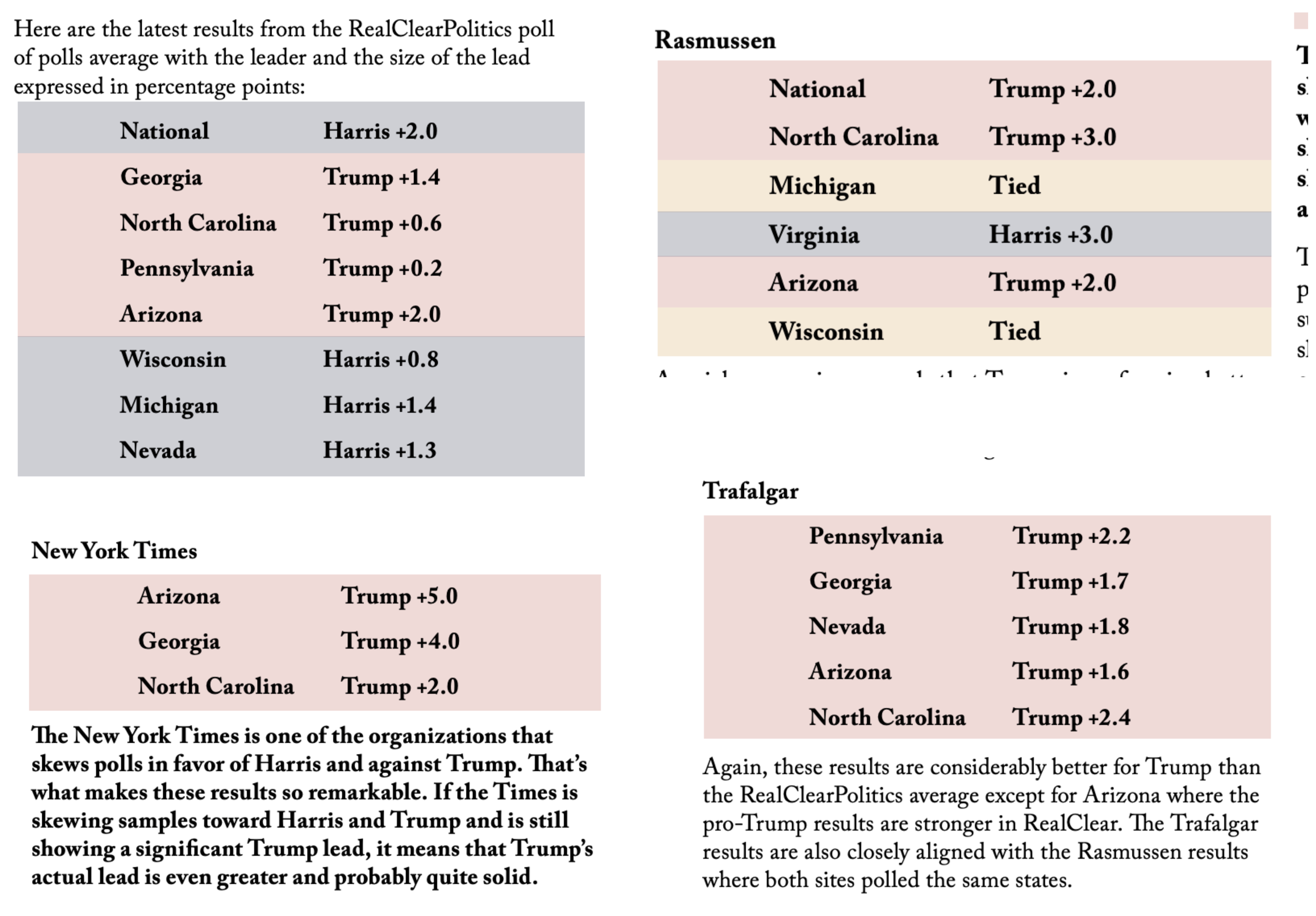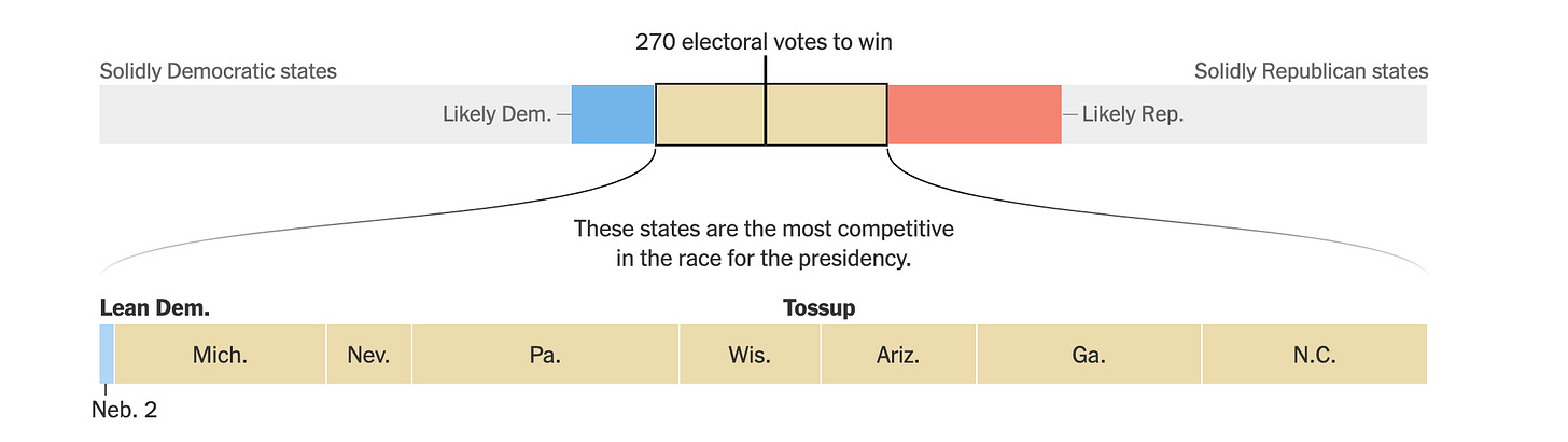Kamala ялахын тулд Pennsylvania эсхүл North Carolina-г ялах хэрэгтэй. Өмнөх 2 сонгуулиар Trump North Carolina-д ялж байсан, Polls дээр мөн сайн үзүүлэлттэй байгаа учраас энэ удаа бас Trump ялна гэж үзвэл Камала ялахын тулд Pennsylvania-г заавал ялах ёстой болж таарч байна.