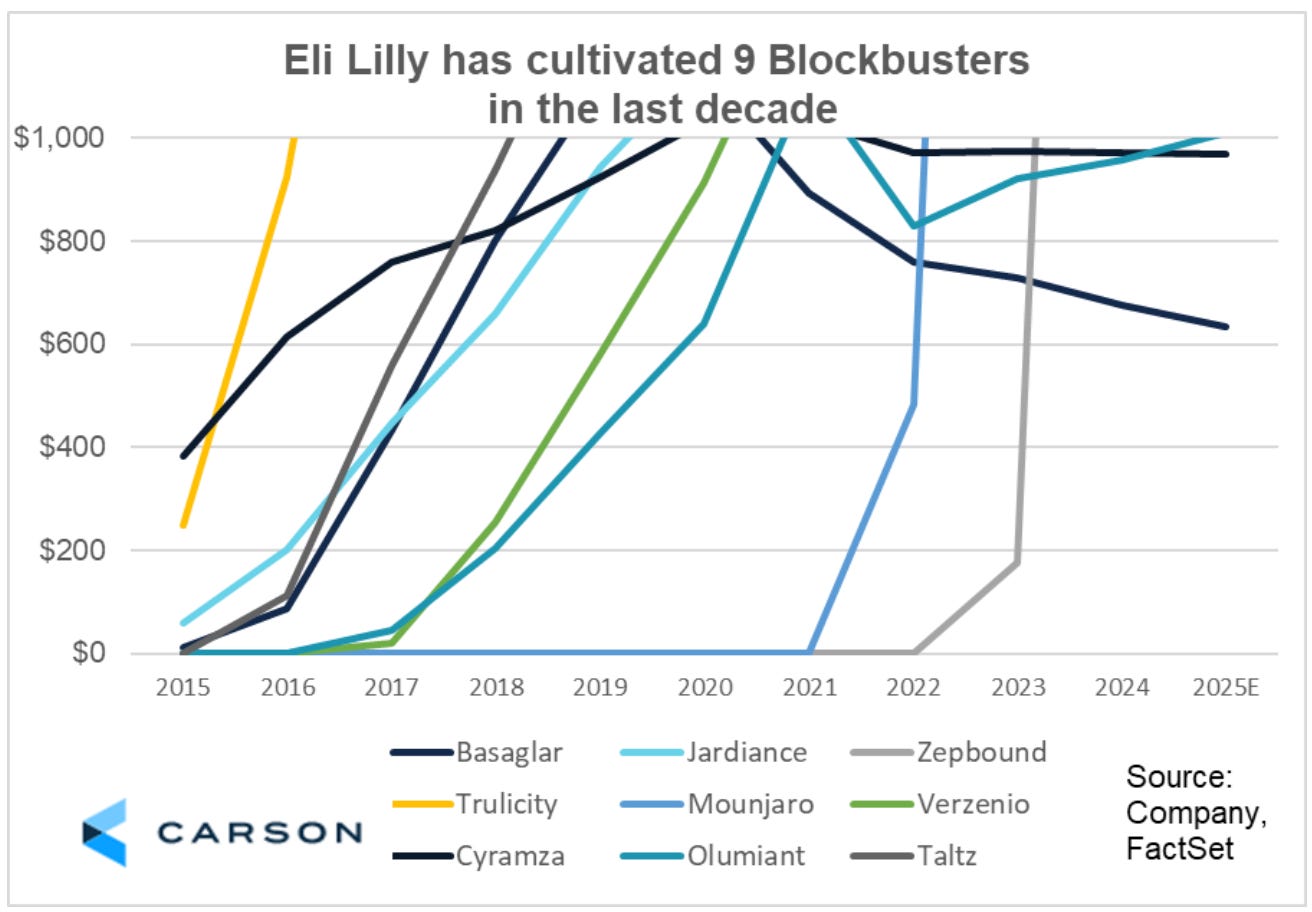 Eli Lilly анхны 1 триллион долларын үнэлгээтэй анхын эрүүл мэндийн компань болов. Сүүлийн 10 жилд л гэхэд тэрбум давсан борлуулалттай 9 бүтээгдэхүүн энэ компань бий болгосон байна.