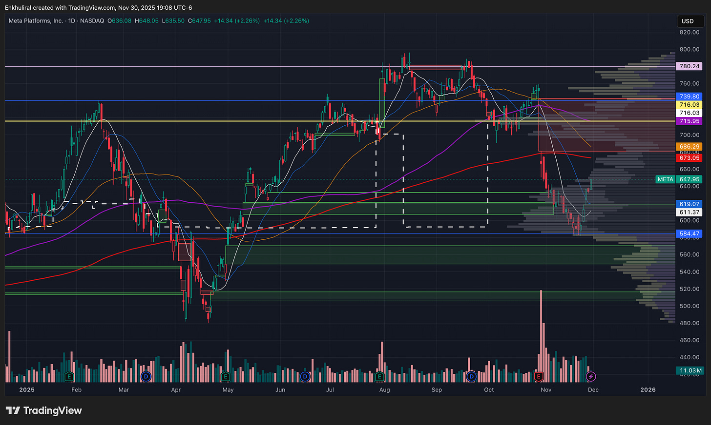 Хэдүүлээ дэндүү эрт орчихсон гэхдээ эргэж өснө гэж таамаглаж байсан хувьцаа META 0.00%↑ билээ. Миний бодлоор буцаад ядаж $700 болох магадлалтай.
