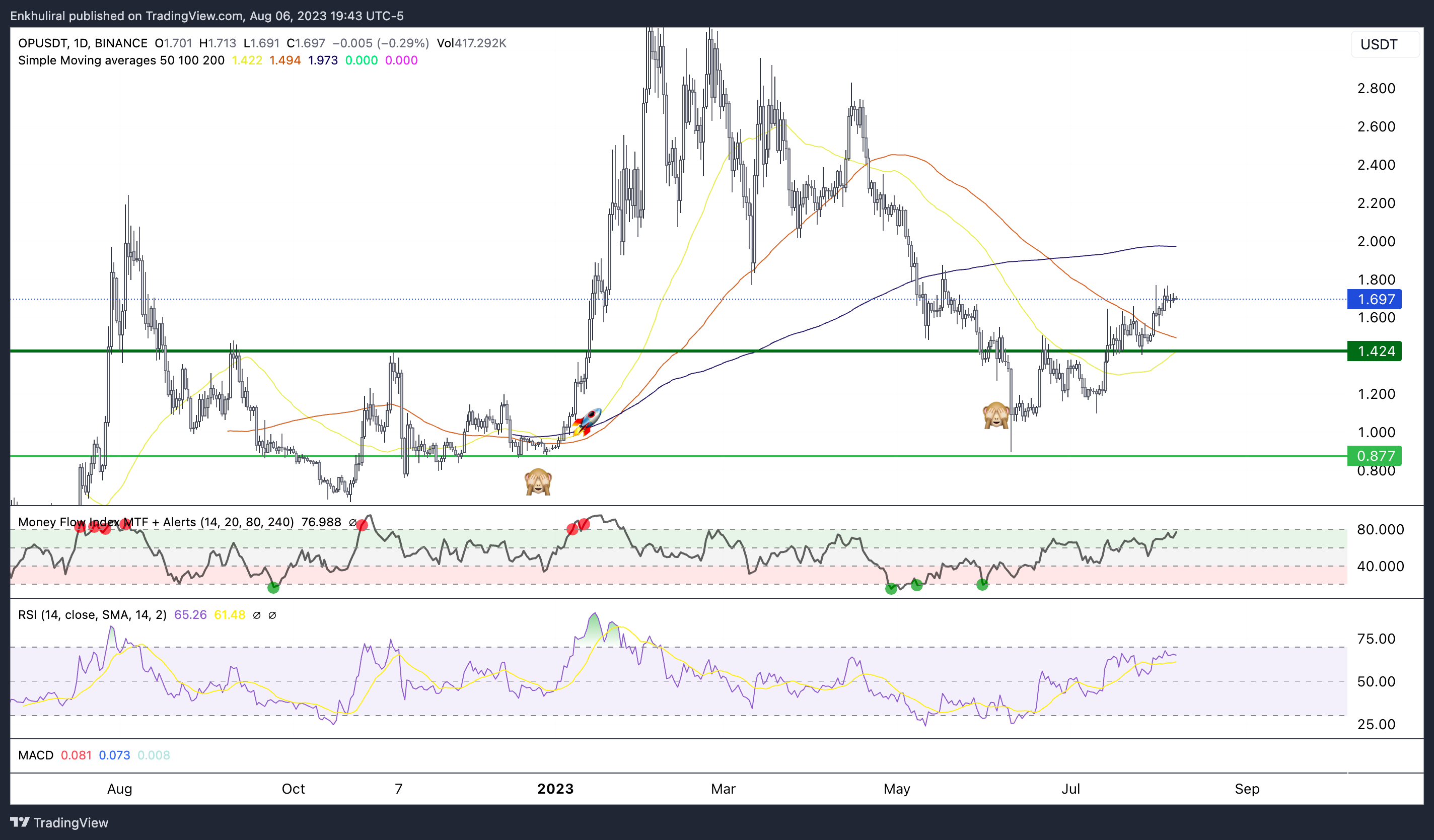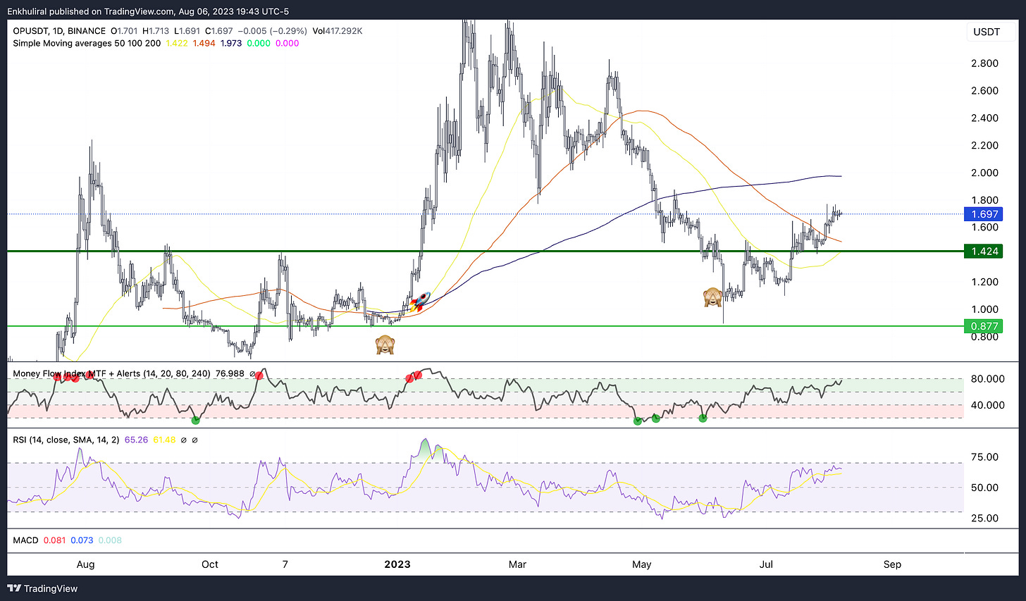 Optimism-iin technology-iig hereglej bga uchraas OP 0.00%↑ -d medeej bullish. Bitcoin ETF garaad, Base sequencer-eesee nemelt orlogotoi bolood yavchihval Coinbase deer bullish bhgui bhad hetsuu bn. Blackrock base deer huvitsaag token bolgoj gargana gej Chico bas durdaad avch baina lee.