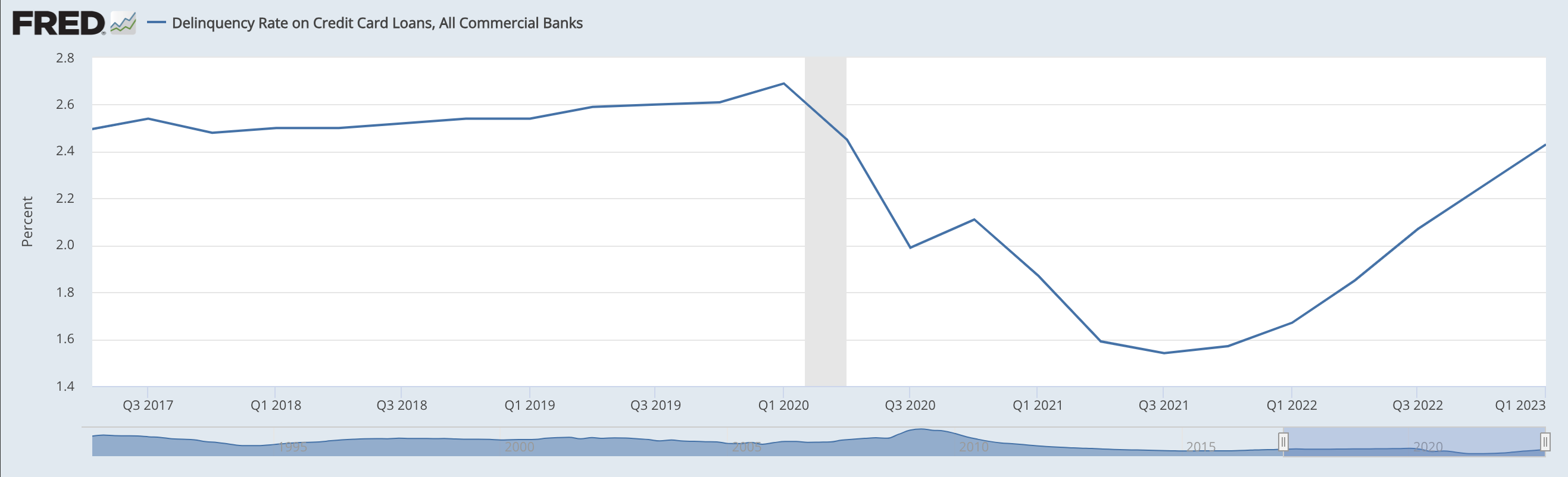 Улирал болгон гардаг кредит картын deliquency data 2022 оноос эхээс хойш өсөлттэй байгаа: