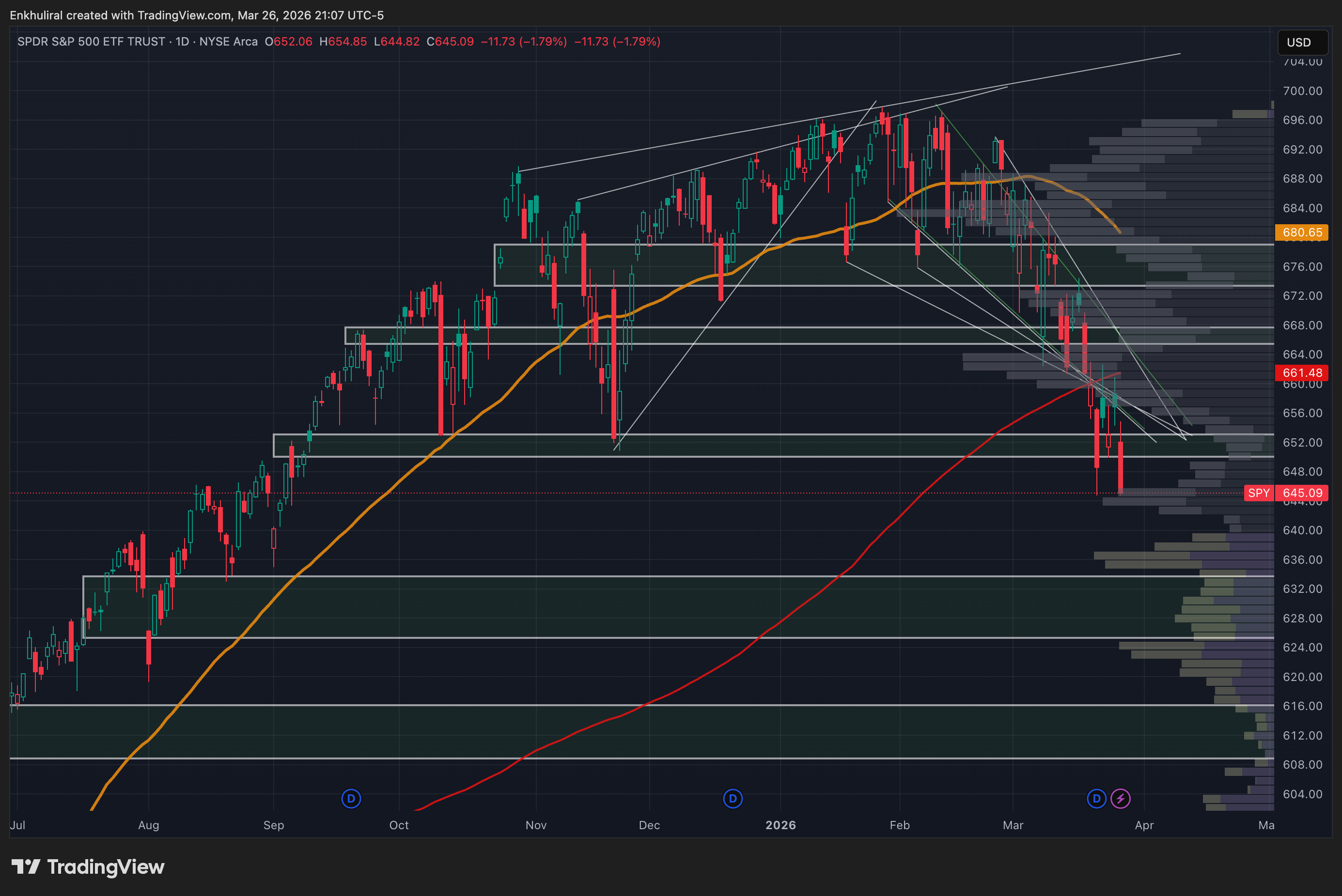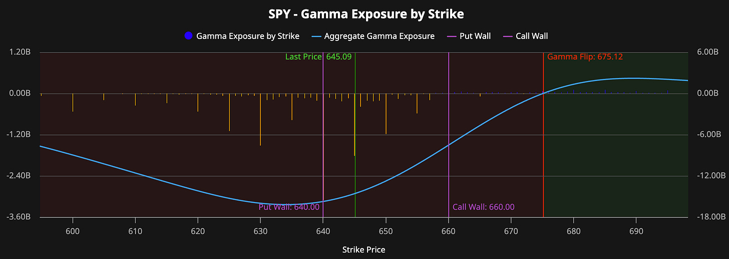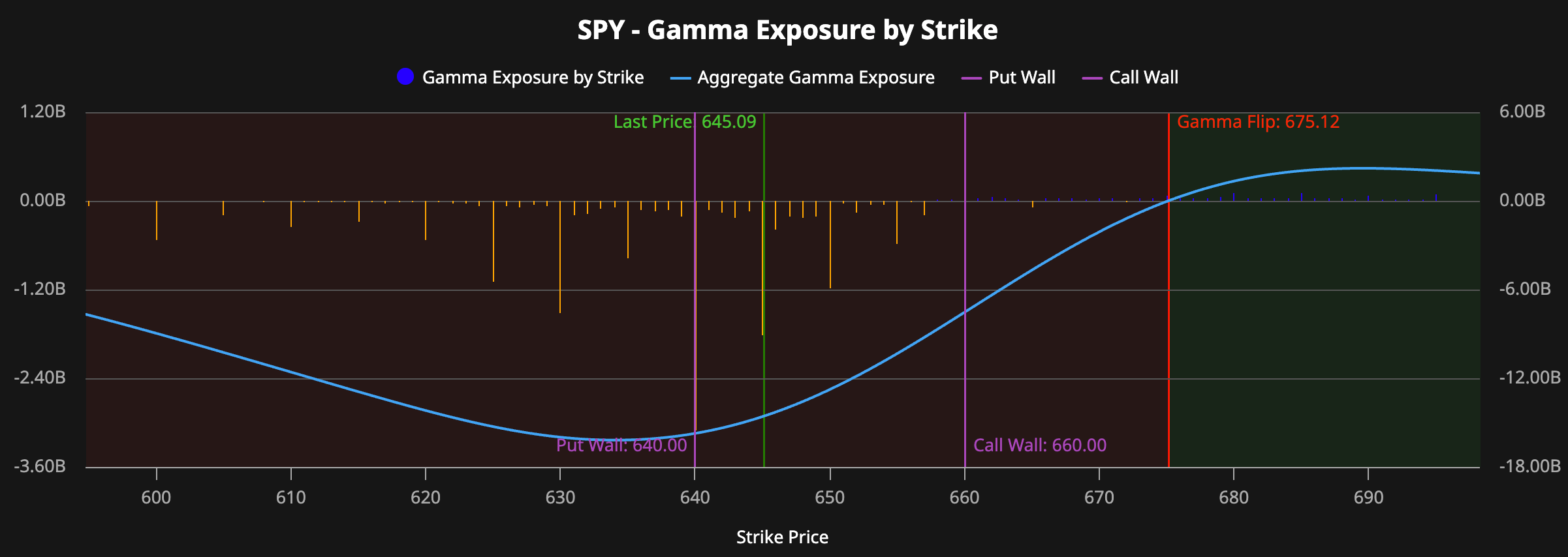 Дараагийн put wall 640 дээр, call wall 660 дээр байна. Маркет үнэмшилтэй буллиш болохын тулд 660-ийн дээр гарах хэрэгтэй. 200 SMA бас $661.48 дээр байгаа.