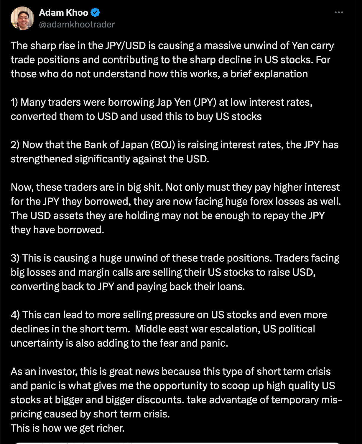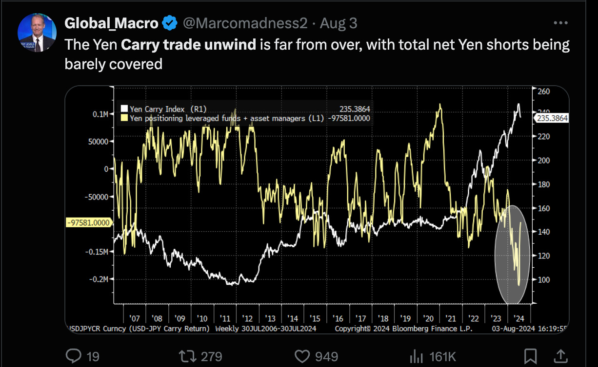 Гэхдээ YEN чангарч байгаатай холбоотой carry trade-үүд margin call дуудагдаад маркет унаж байгаа үзэгдэл бас болж байна.