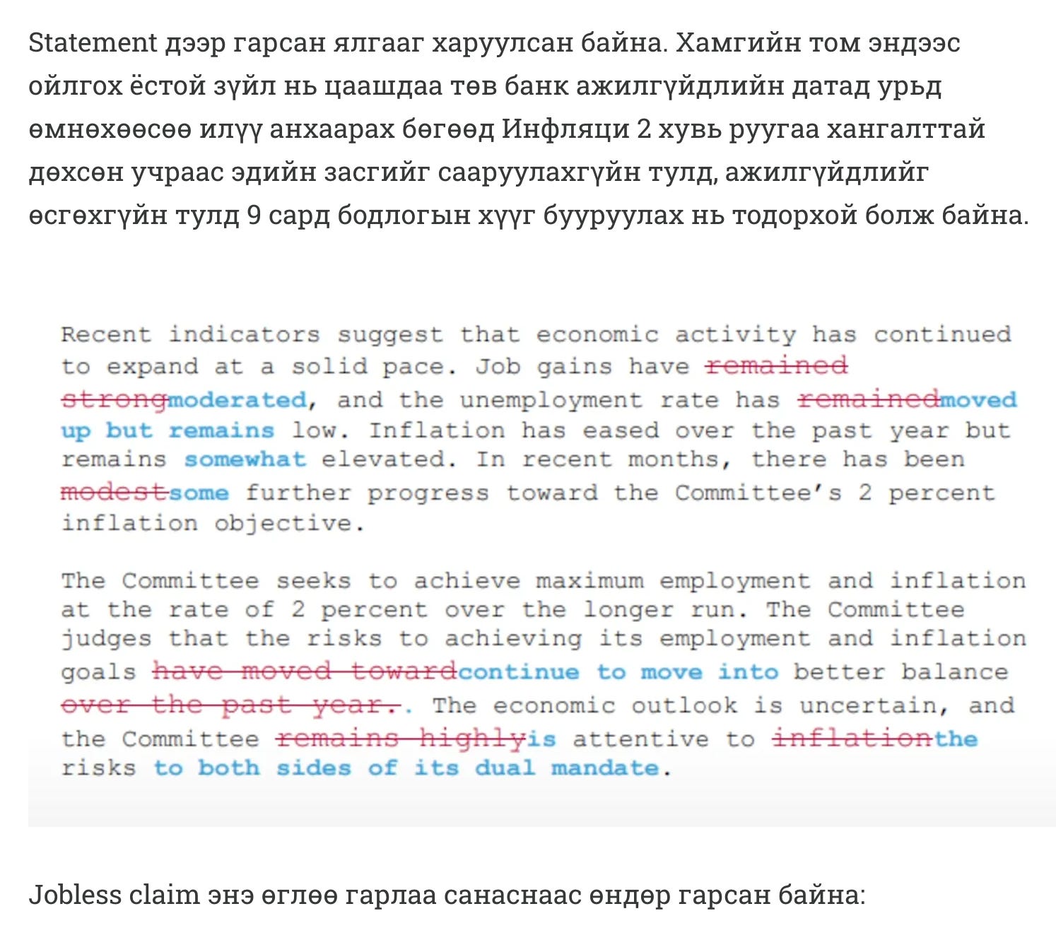 Бодлогын хүүг бууруулсны дараа уналт болсон бөгөөд бодлогын хүү буурлаа гээд маркет унахгүй гэж дүгнэлт гаргаж болохгүйг сануулжээ.