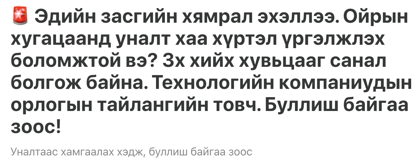 Мөлжүүртэй булан 8 сарын 1-ны пост: