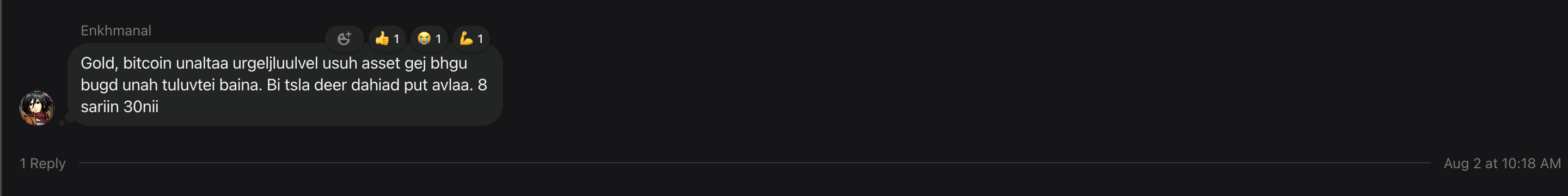 8 сарын 1-ны орой Мөлжүүртэй булан дээр бичсэн чат: