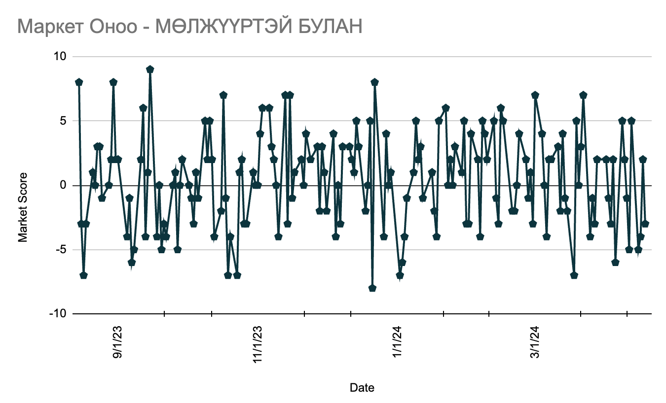 Marкет оноо: -3 / өчигдөр 2 байсан/