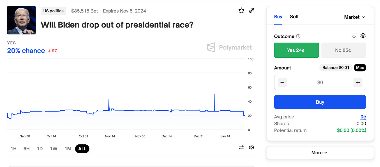Байденыг сонгуулиас нэрээ татах магадлалыг маркет 24% гэж үзэж байна.