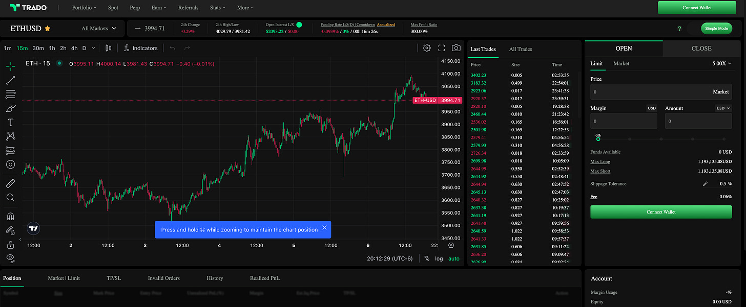 Сүртэй хэрэглэж үзэхээр гоё DApp гэхдээ үнэндээ байдаггүй юм байна. Ганц байгаа PERP exchange нь болхи л юм.