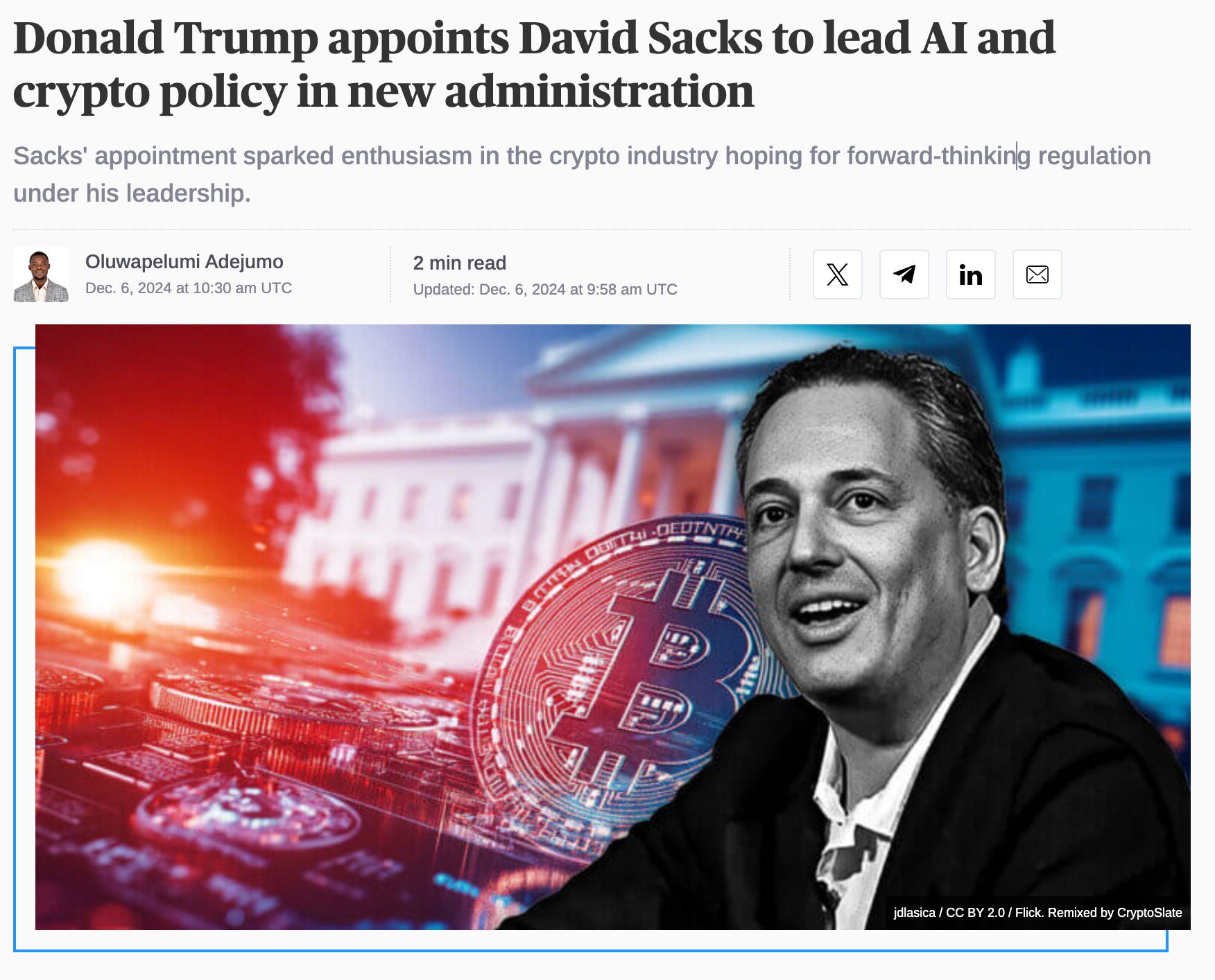 Paypal-ийн анхны COO байсан venture capitalist David Sacks-ийг крипто, хиймэл оюун ухааны бодлого хариуцсан албан тушаалд томилж байгаа юм байна.