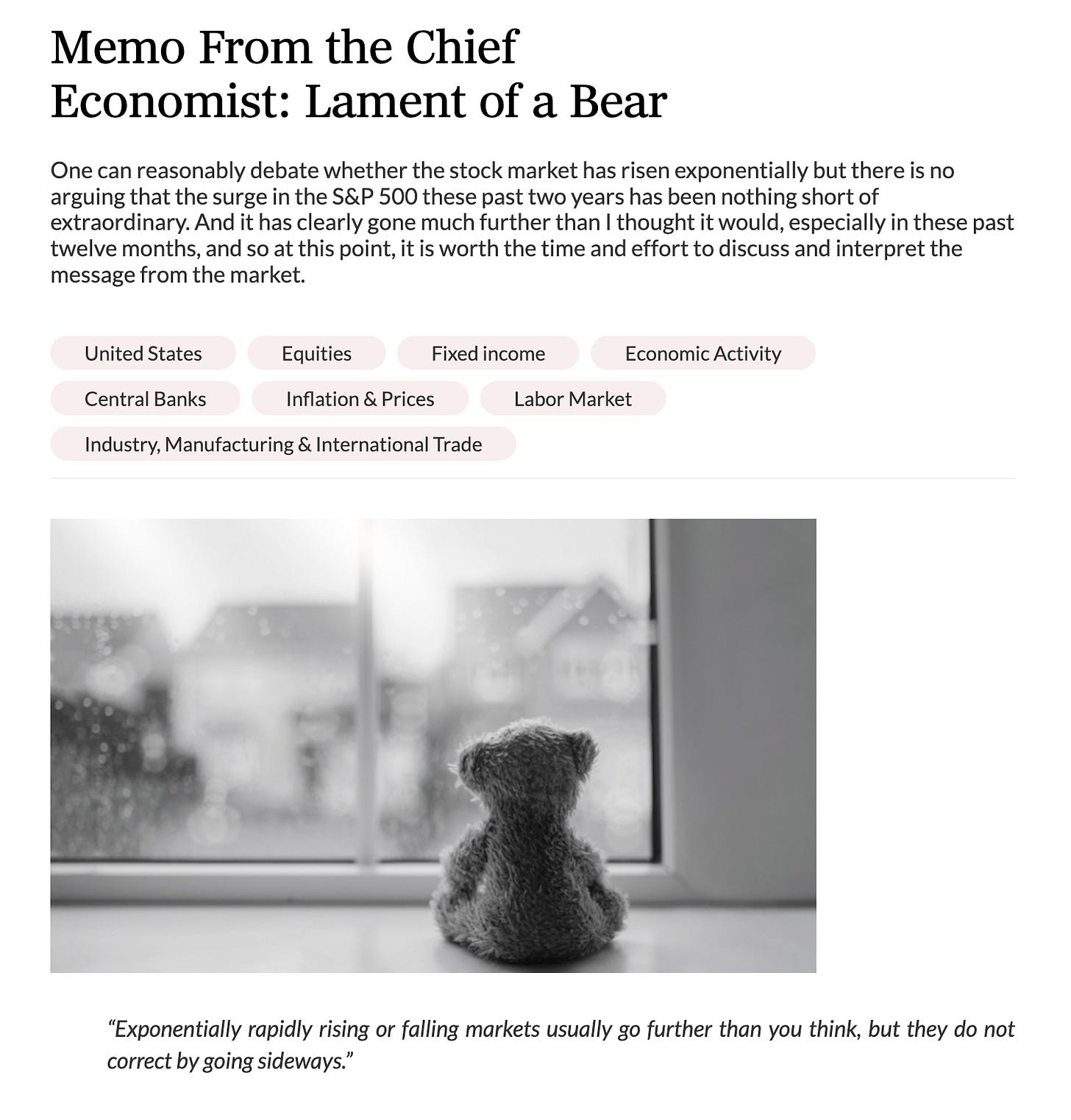 Зохиогч уламжлалт баавгайн байр сууринаас татгалзаж, технологийн хувьсгал (AI зэрэг) булл зах зээлийг уламжлалт хүлээлтээс даван хэтрүүлж болохыг хүлээн зөвшөөрсөн. Засварууд хүлээгдэж байгаа ч эдгээр уналтуудыг урт хугацааны булл зах зээлийн хүрээнд худалдан авах боломж гэж үзэж байна.