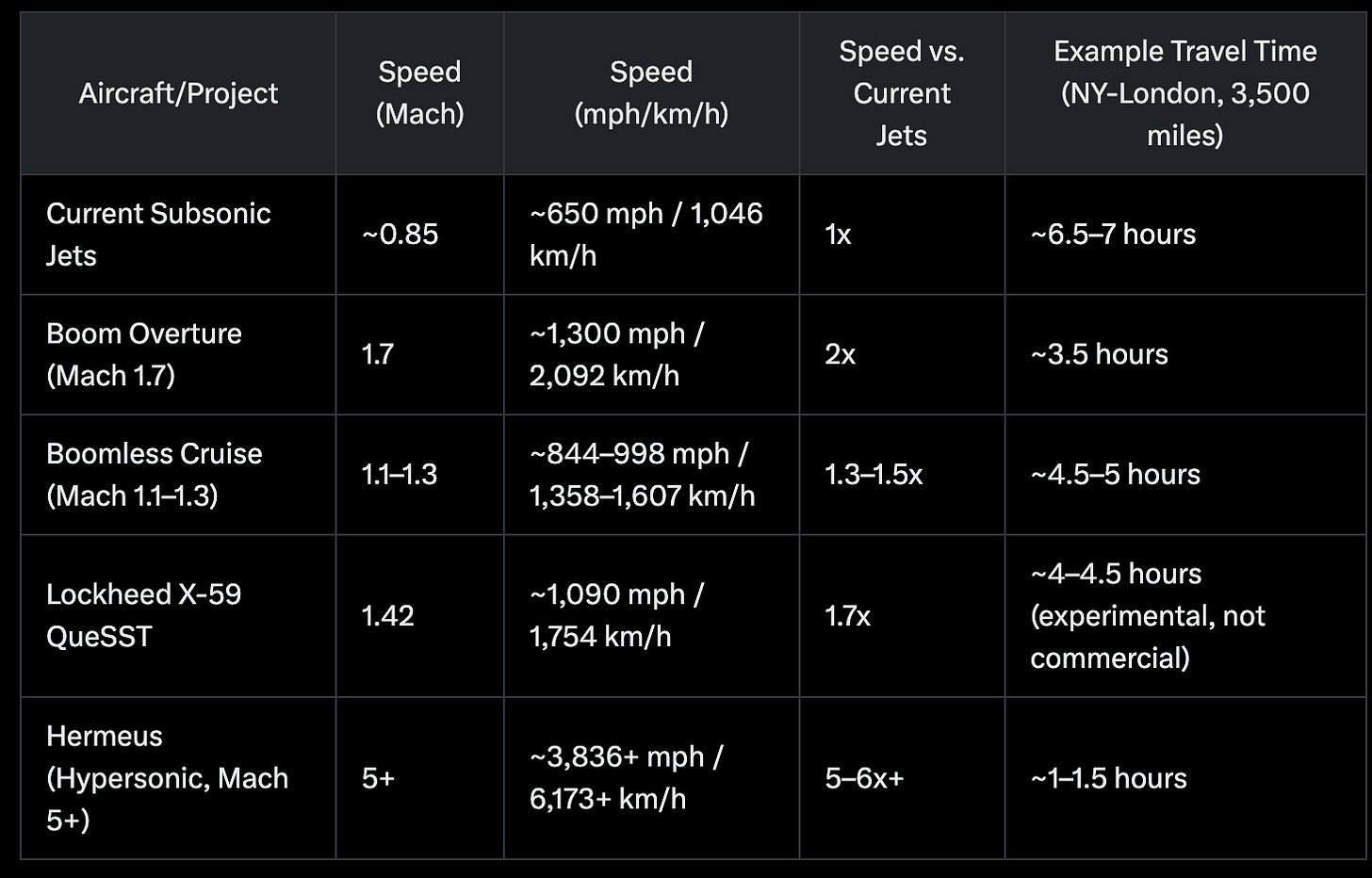 Дээрх зурган дээр байгаа онгоц нь Boom-ийн Overture юм байна. 2029 онд ашиглалтад орох төлөвлөгөөтэй ба 130 урьдчилсан захиалга нислэгийн компаниудаас орж ирсэн байна. Энэхүү онгоцны хөдөлгүүрийг хийж байгаа компань нь Мөлжүүртэй булангийн Дрон багц дээр санал болгосон Kratos юм байна.