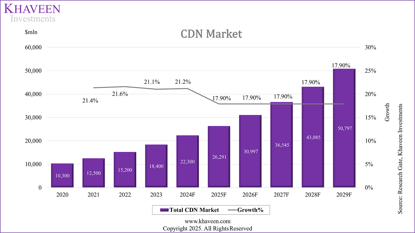 CDN маркет үргэлжлүүлэн хүчтэй өсөлттэй байгаа бөгөөд 29 онд гэхэд 50 тэрбум доллар болох төлөвтэй байна.