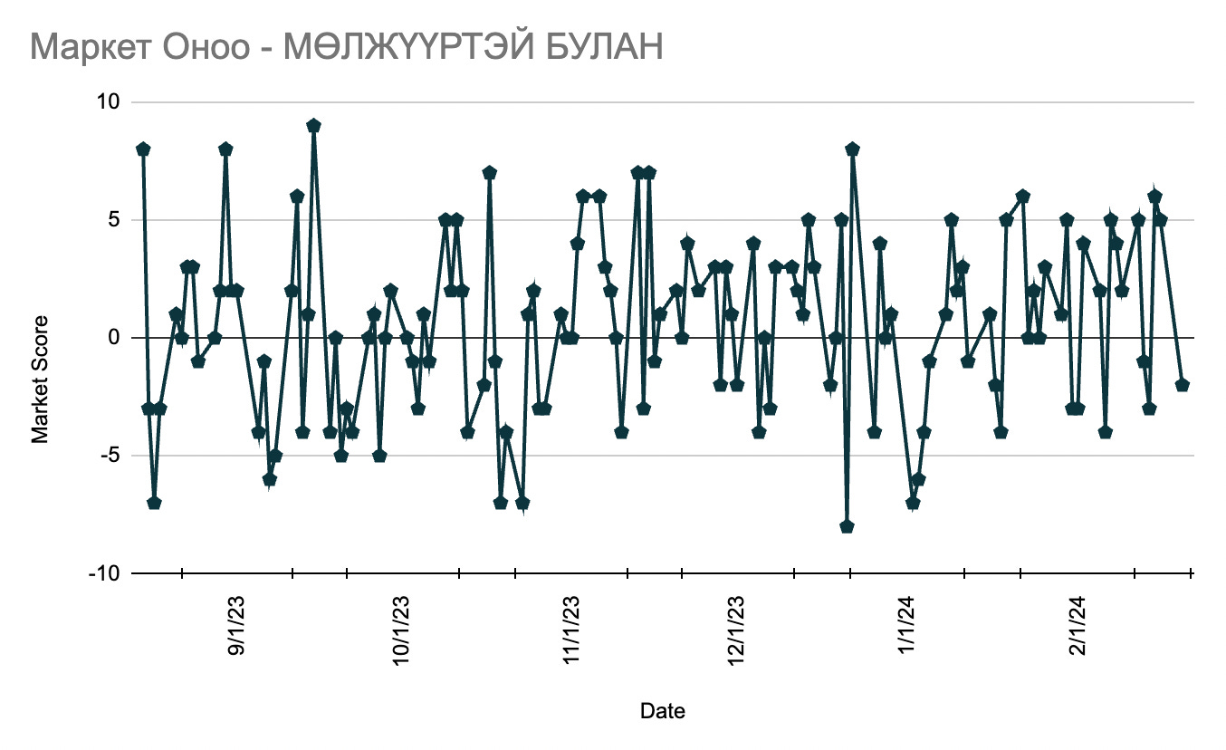 Marкет оноо: -2 / өнгөрсөн 5дахид оноо 5 байсан/