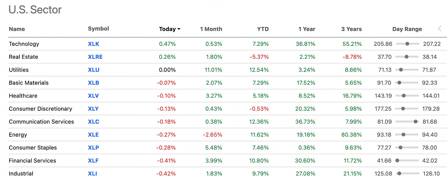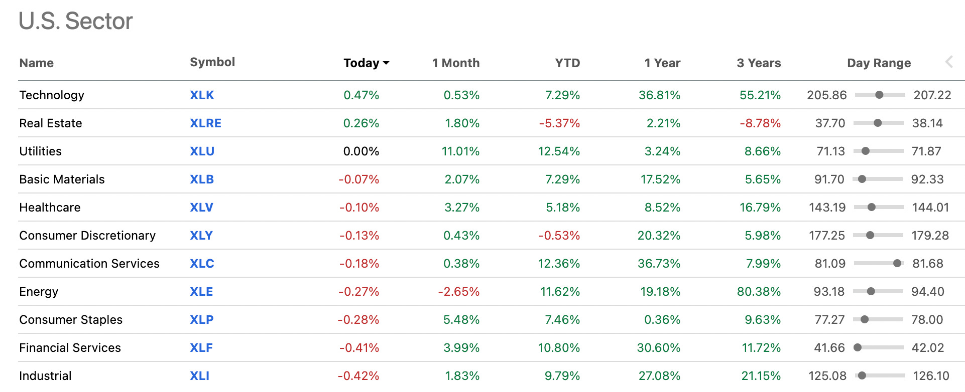 Technology sector 0.47% usulttei, Industrial sector 0.42% unalttai.