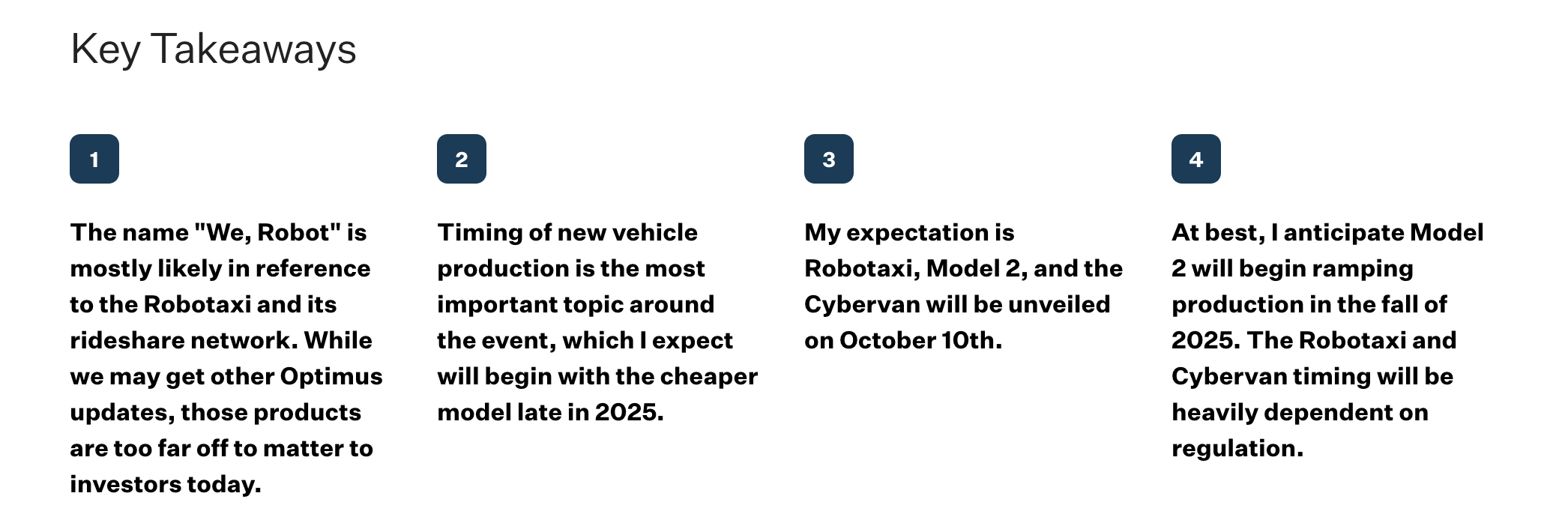 Tesla "We, Robot" арга хэмжээ, дараагийн арилжааны саналууд, ажилгүйдлийн дата