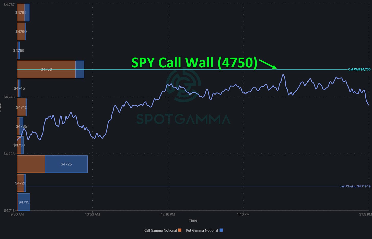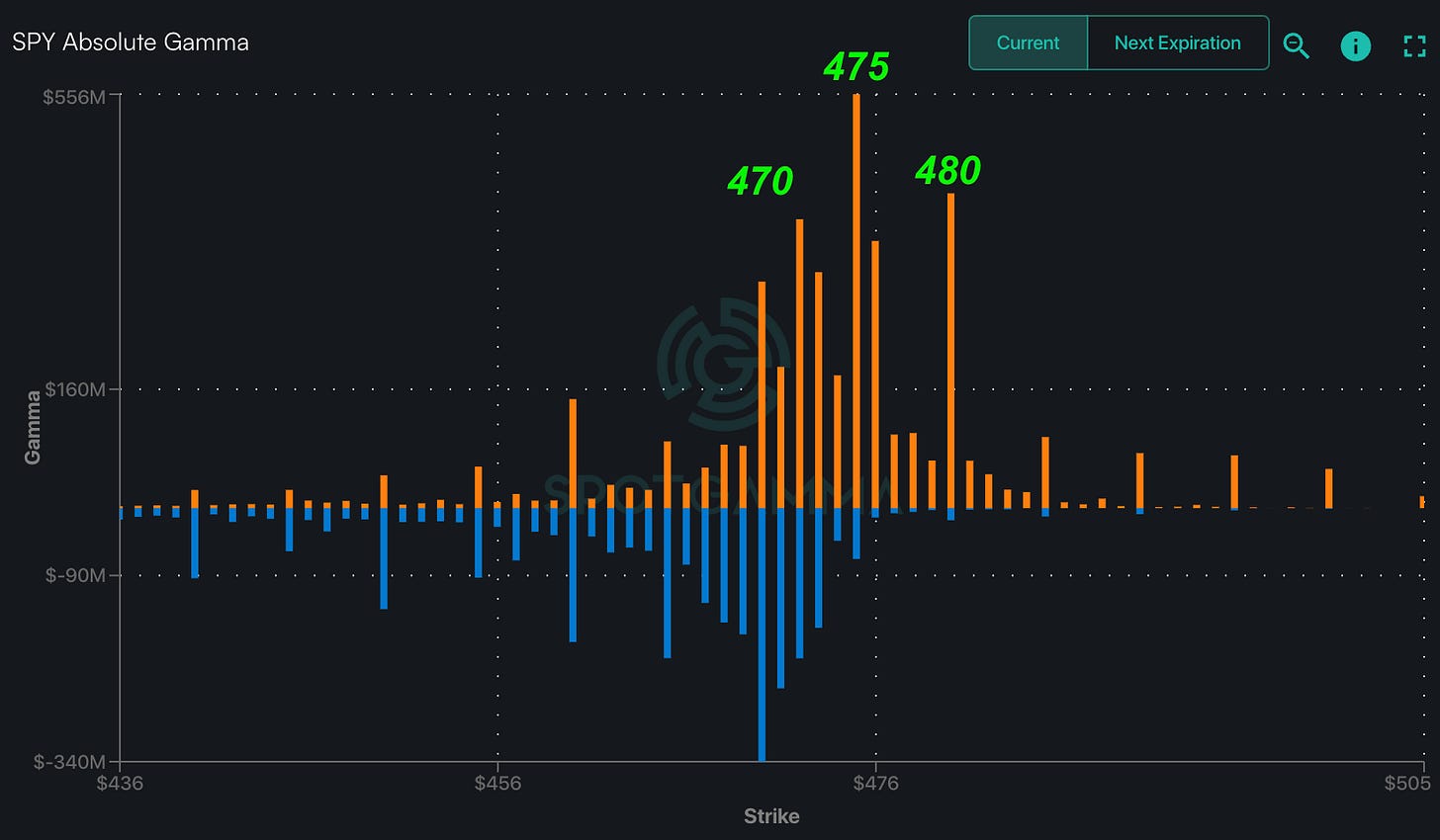Одоогоор call wall 4750 дээр SPY дээр 475 дээр байгаа. Тэгэхээр энэ ханшууд дээр resistance байгаа: