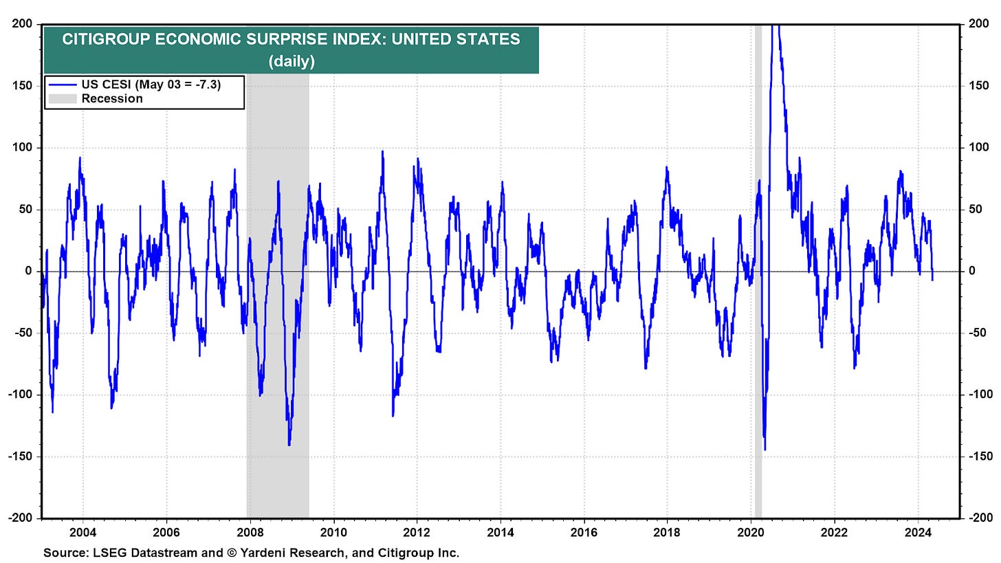 Economic surprise index мөн адил сөрөг дататай болж эхэлж байгааг харуулсан байна: