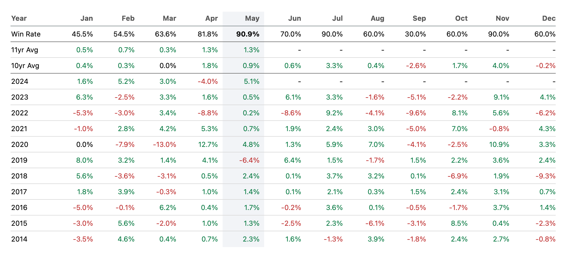 Жилийн аль сард хувьцаа өсдөг унадаг вэ гэдэг үзүүлэлтийг seasonality гэдэг. Тэгвэл 5, 7, 11 сарууд өсөлттэй байх магадлал 90%-тай байдаг юм байна.