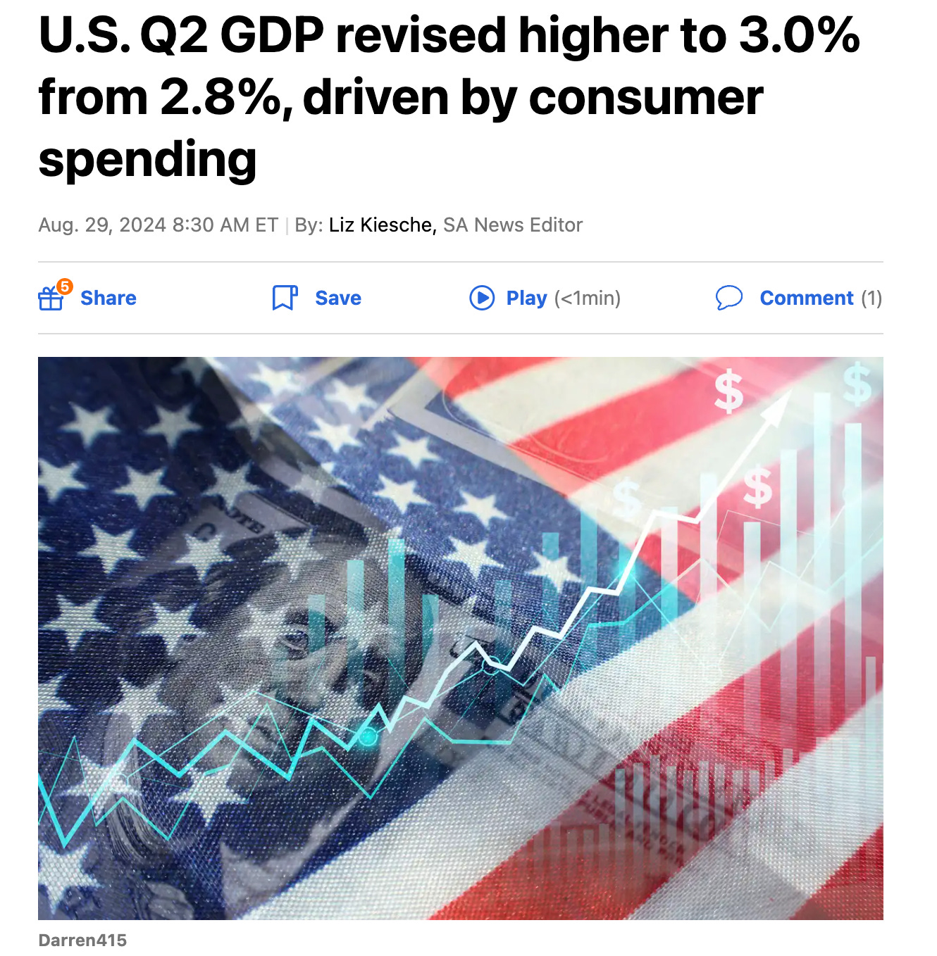 GDP өсөлт бас хүлээлтээс өндөр гарсан байна. Маркет premarket дээр өсөж байна: